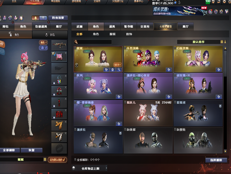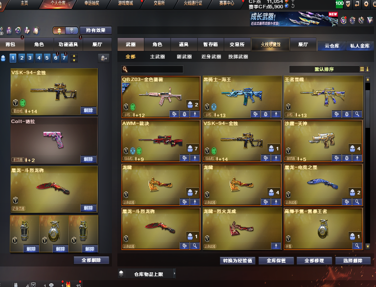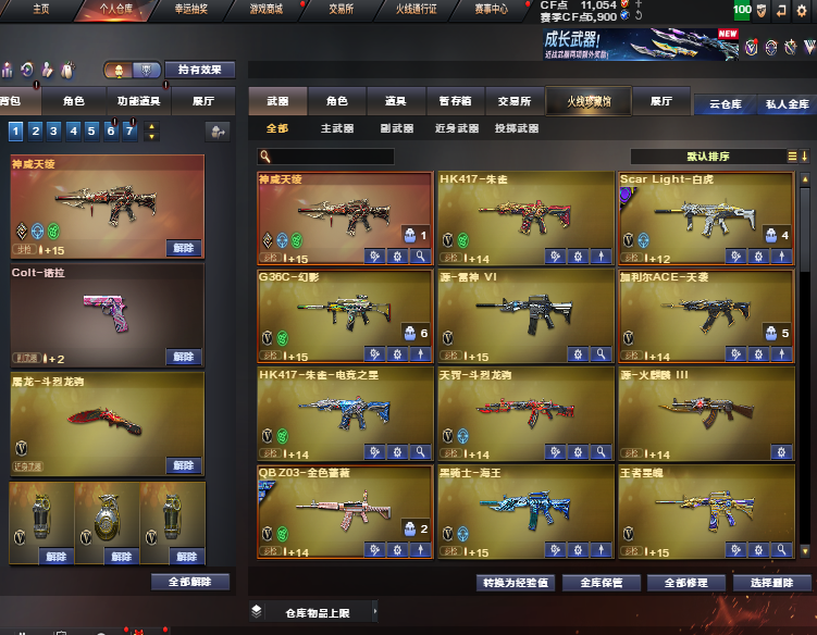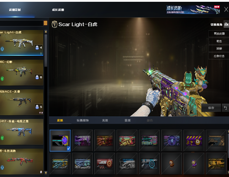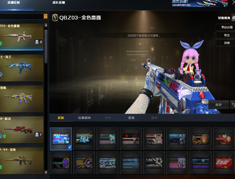妮妮 神威天绫 G36C幻影 加利尔天袭 白虎巅峰皮 天罚朱雀 王者星魄 QBZ电竞之星 VSK金蚀