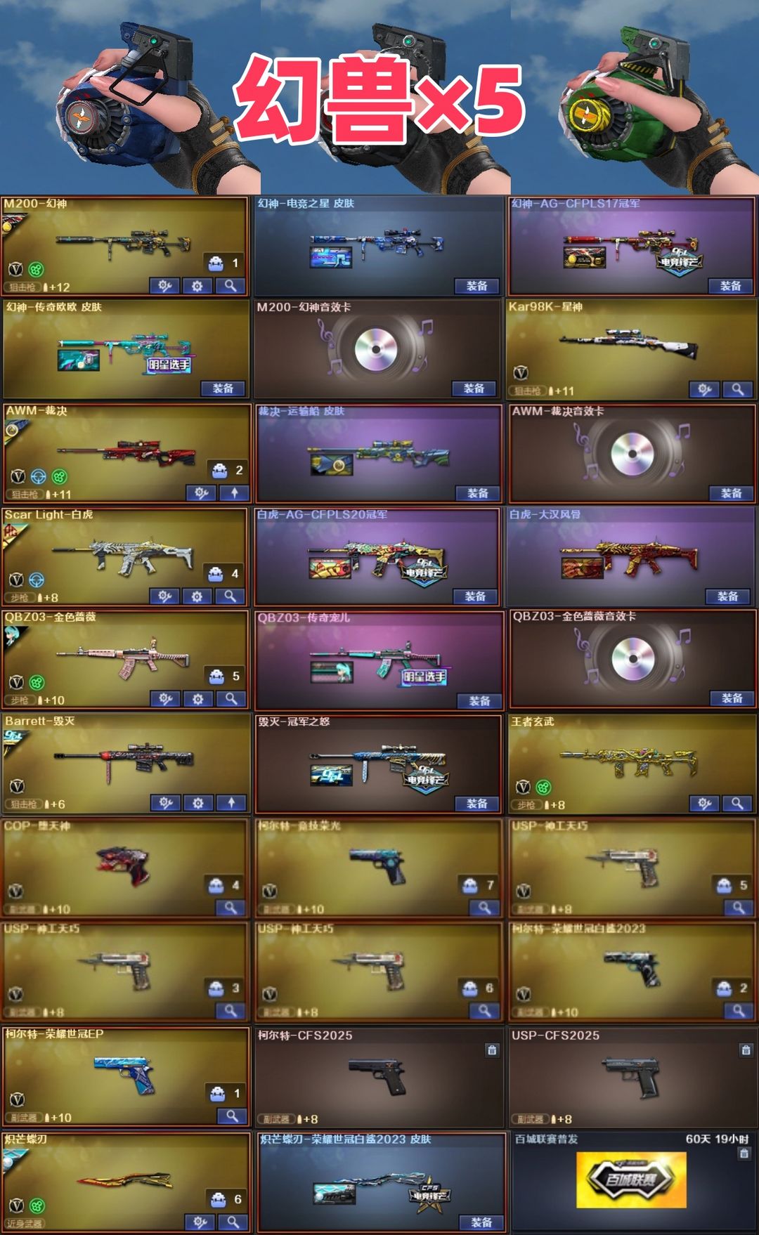 212豆【北部】幻兽×5+幻神欧欧3皮音⭐裁决套+星神usp×3cop白鲨特EP特qbz宠儿白虎AG