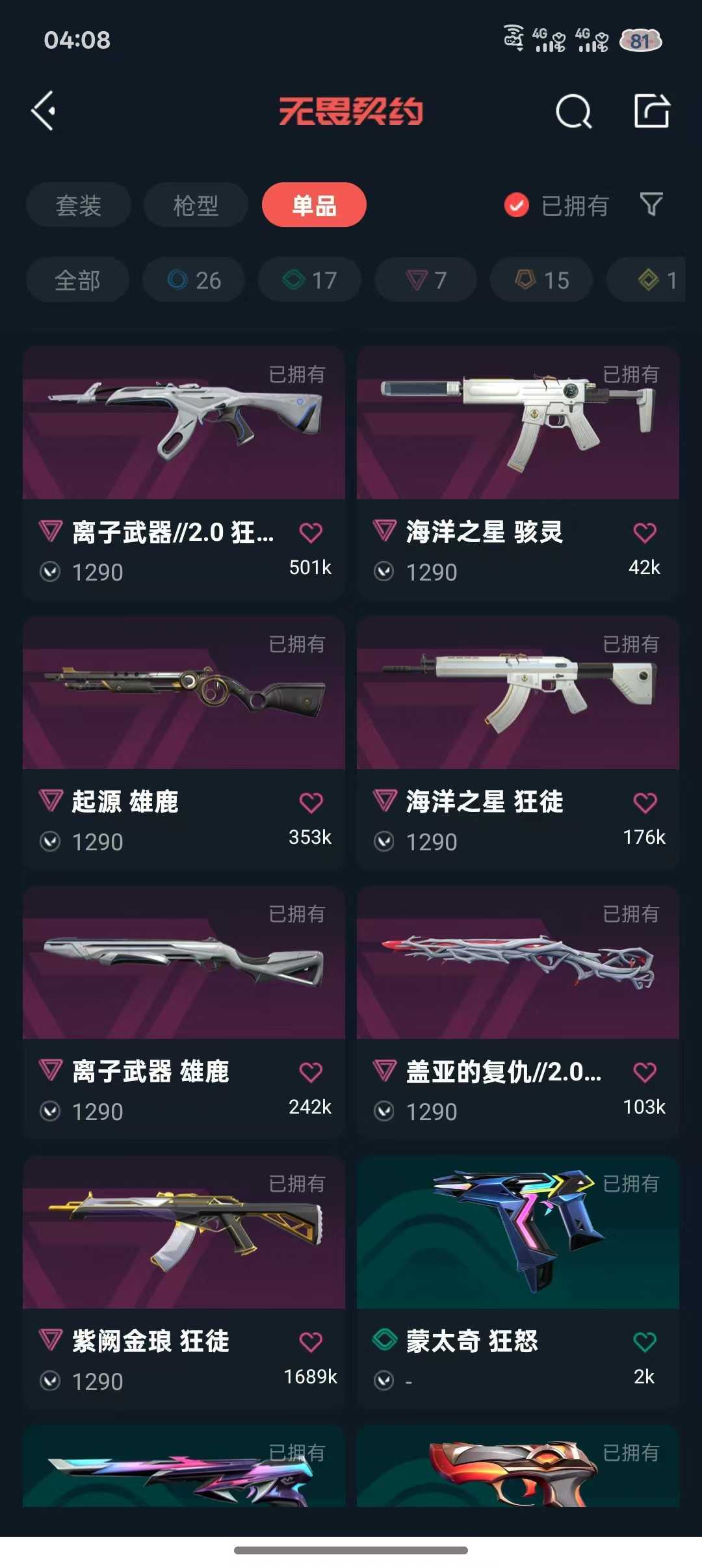武器皮肤数量:66