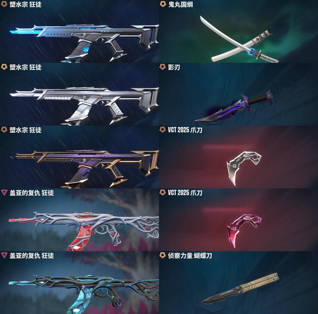 可排位⭐19w大库存⭐盖亚塑水宗混沌⭐VCT爪影刃蝴蝶/摩托玉龙掠夺⭐恶鬼太刀套/离子VCT⭐