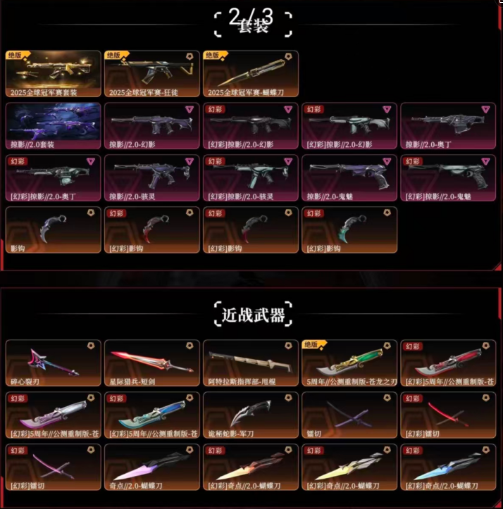 2025冠军掠影套✨塑水宗盖亚的复仇光荣虚空洪荒堕天侦察幻影碎心裂刃军刀镭切蝴蝶刀