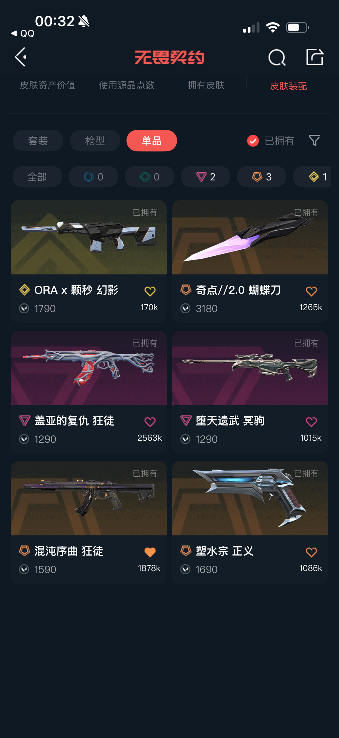 可排位⭐奇点蝴蝶刀⭐混沌序曲狂徒⭐盖亚的复仇狂徒⭐ORA*颗秒幻影⭐堕天遗武冥驹⭐塑水宗正义⭐