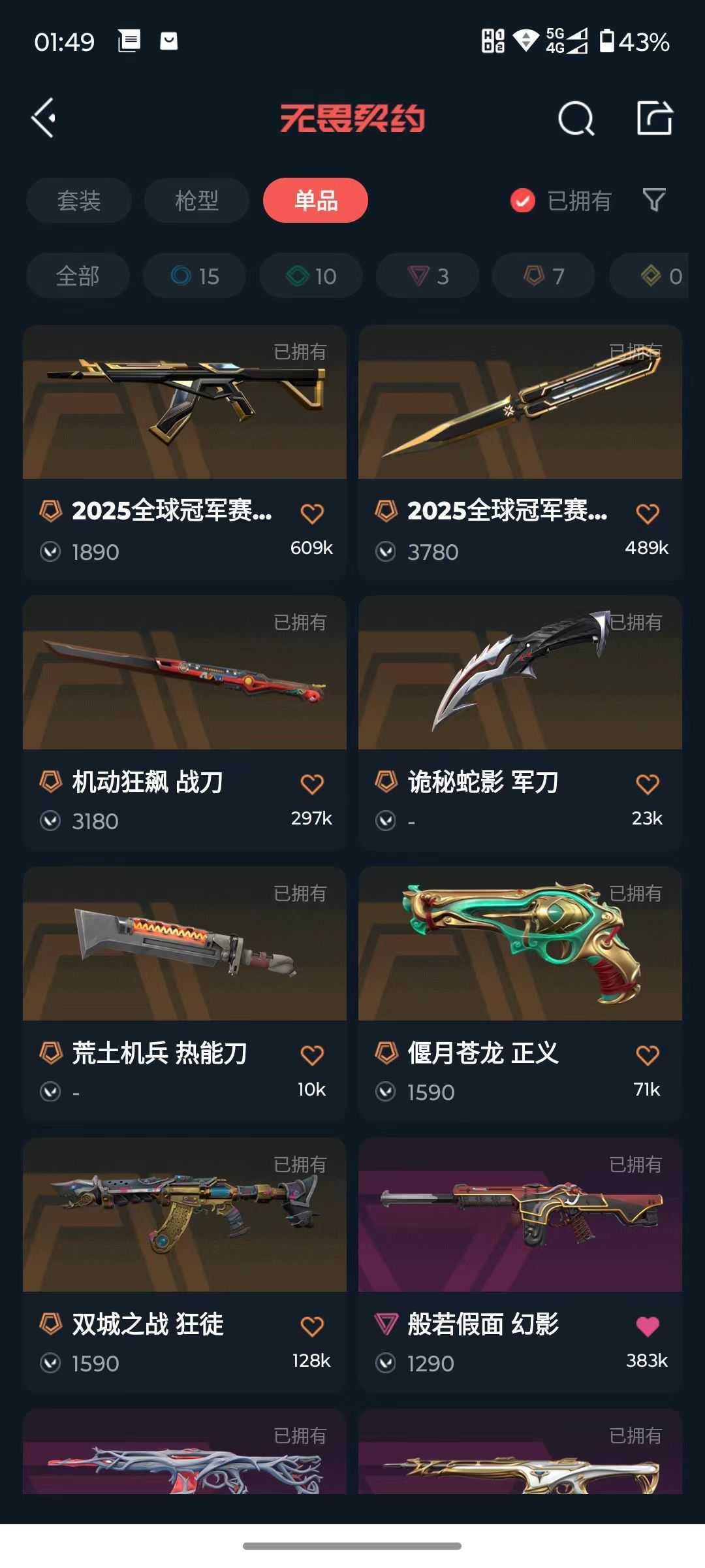 3w库存❤️25冠军套❤️机动狂飙战刀❤️盖亚狂徒❤️双城之战狂徒❤️天界戍卫
