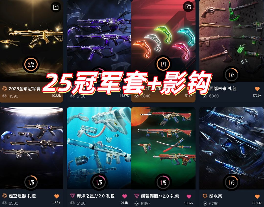 禁排❤️25冠军套❤️vct爪刀太刀剥皮小刀❤️虚无塑水宗盖亚掠夺2.0海洋之心❤️西部未来天界戍卫