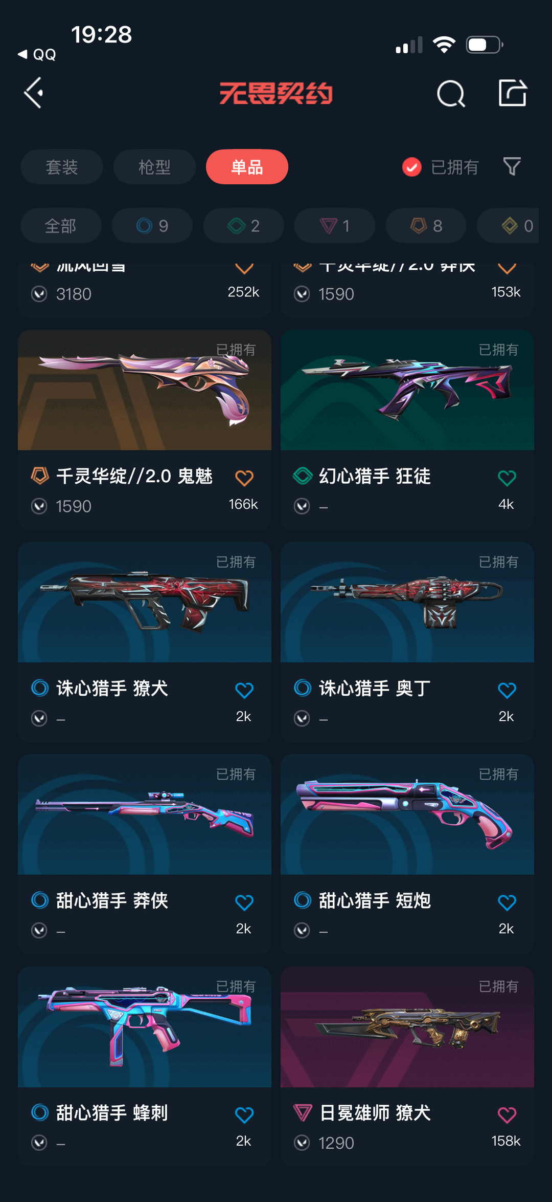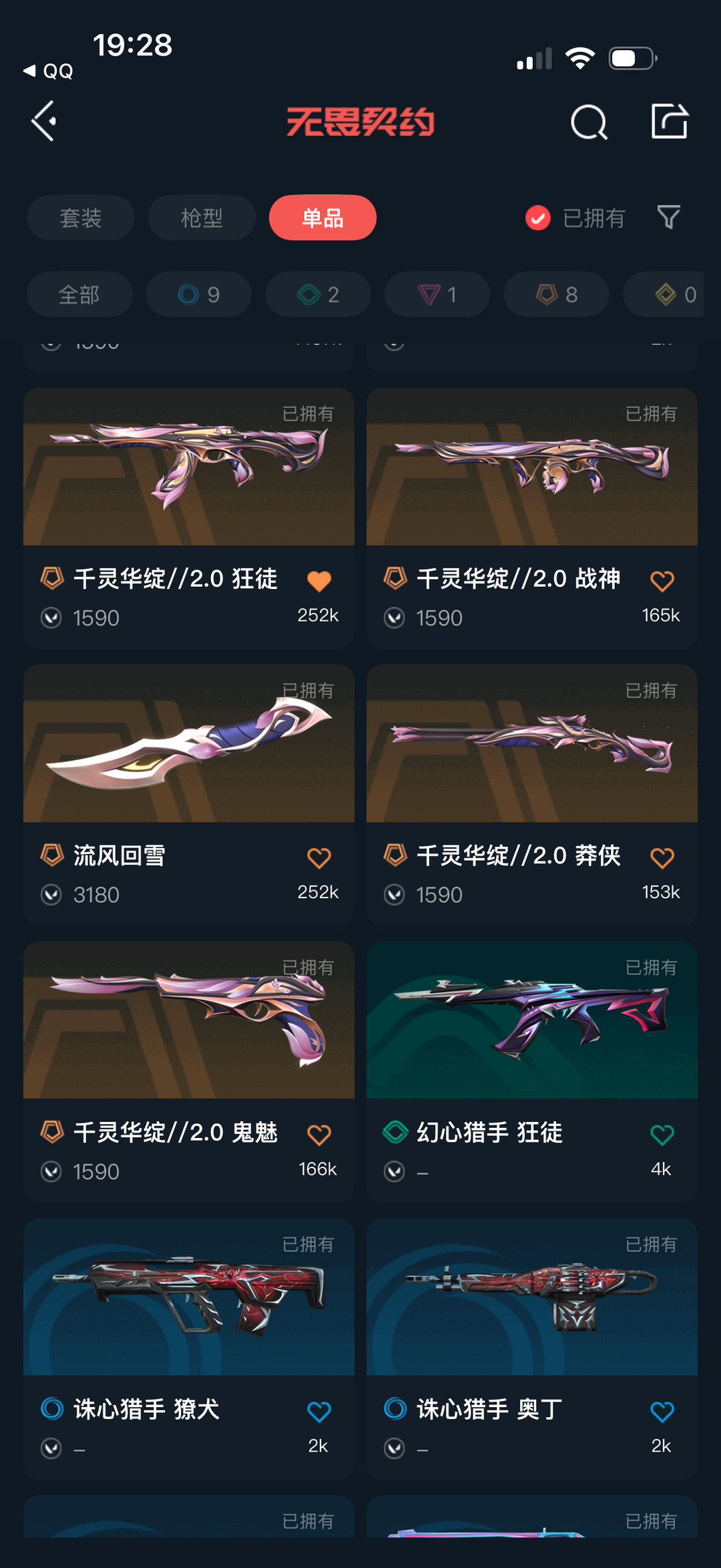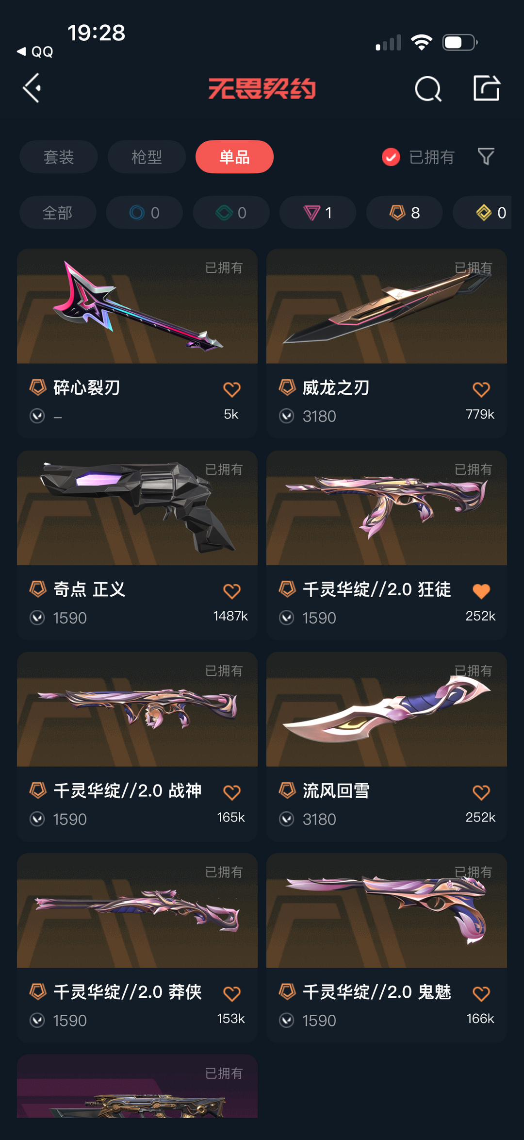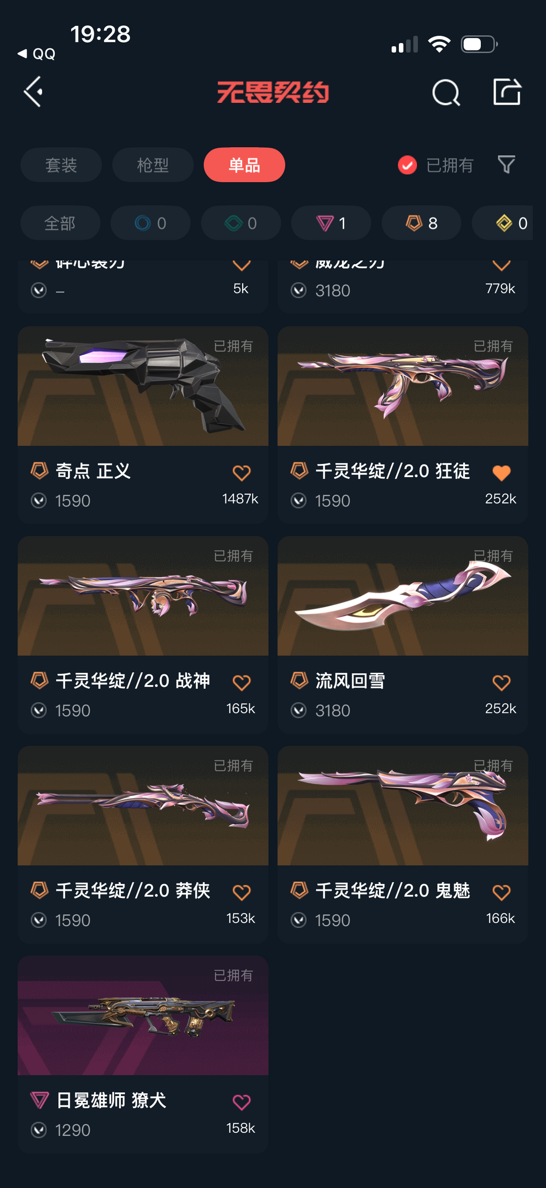 可排位⭐千灵华绽2.0套装⭐威龙之刃⭐奇点正义⭐日冕雄师獠犬⭐流风回雪⭐千灵华绽狂徒战神鬼魅莽侠⭐