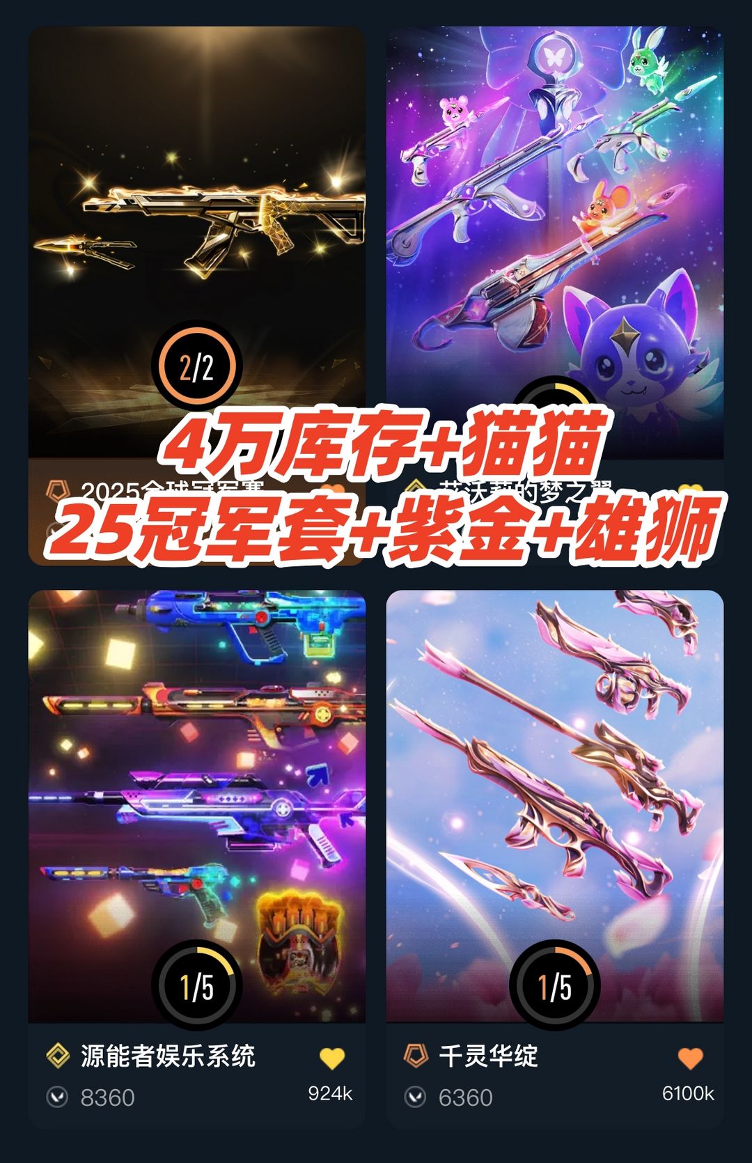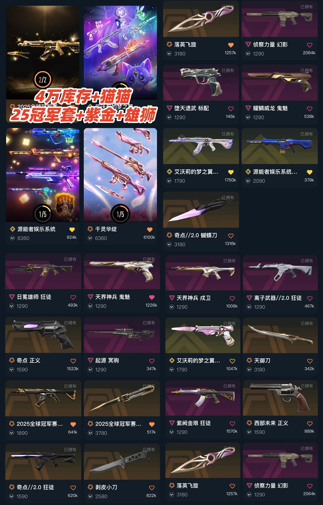 可排✅4万⭐猫猫梦之翼25冠军套紫金日冕雄狮离子⭐蝴蝶刀天御刀落英飞旋剥皮⭐侦察源能者西部未来天界