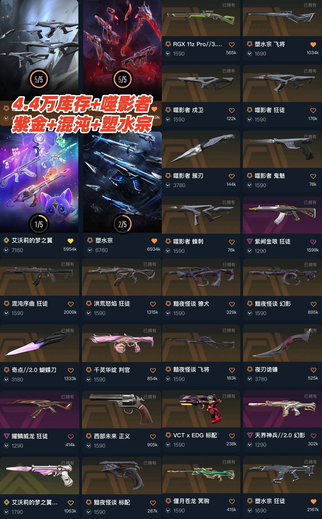可排✅4.4万⭐噬影者紫金混沌洪荒怒焰威龙塑水宗⭐蝴蝶刀簇刃诡镰⭐黯夜怪谈⭐西部未来苍龙天界猫猫莲花