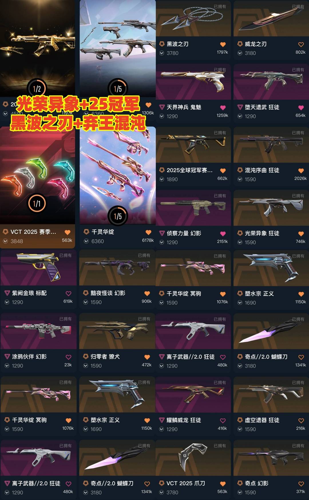 可排✅精品库存⭐光荣异象弃王25冠军混沌离子2虚无威龙⭐黑波之刃威龙之刃蝴蝶刀vct爪⭐黯夜怪谈天界