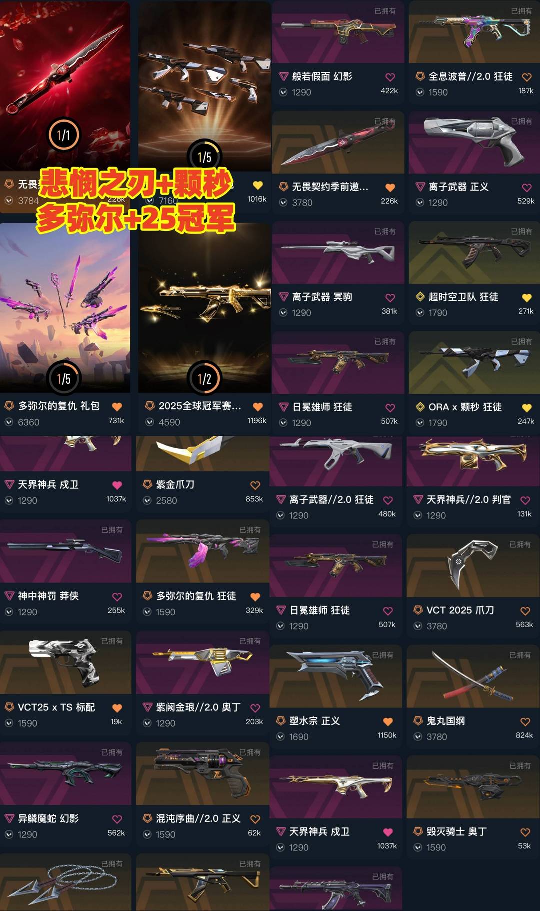 禁排✅精品库存⭐悲悯之刃超时空卫队颗秒日冕雄狮多弥尔25冠军⭐黑波之刃紫金爪⭐般若假面异鳞魔蛇vct