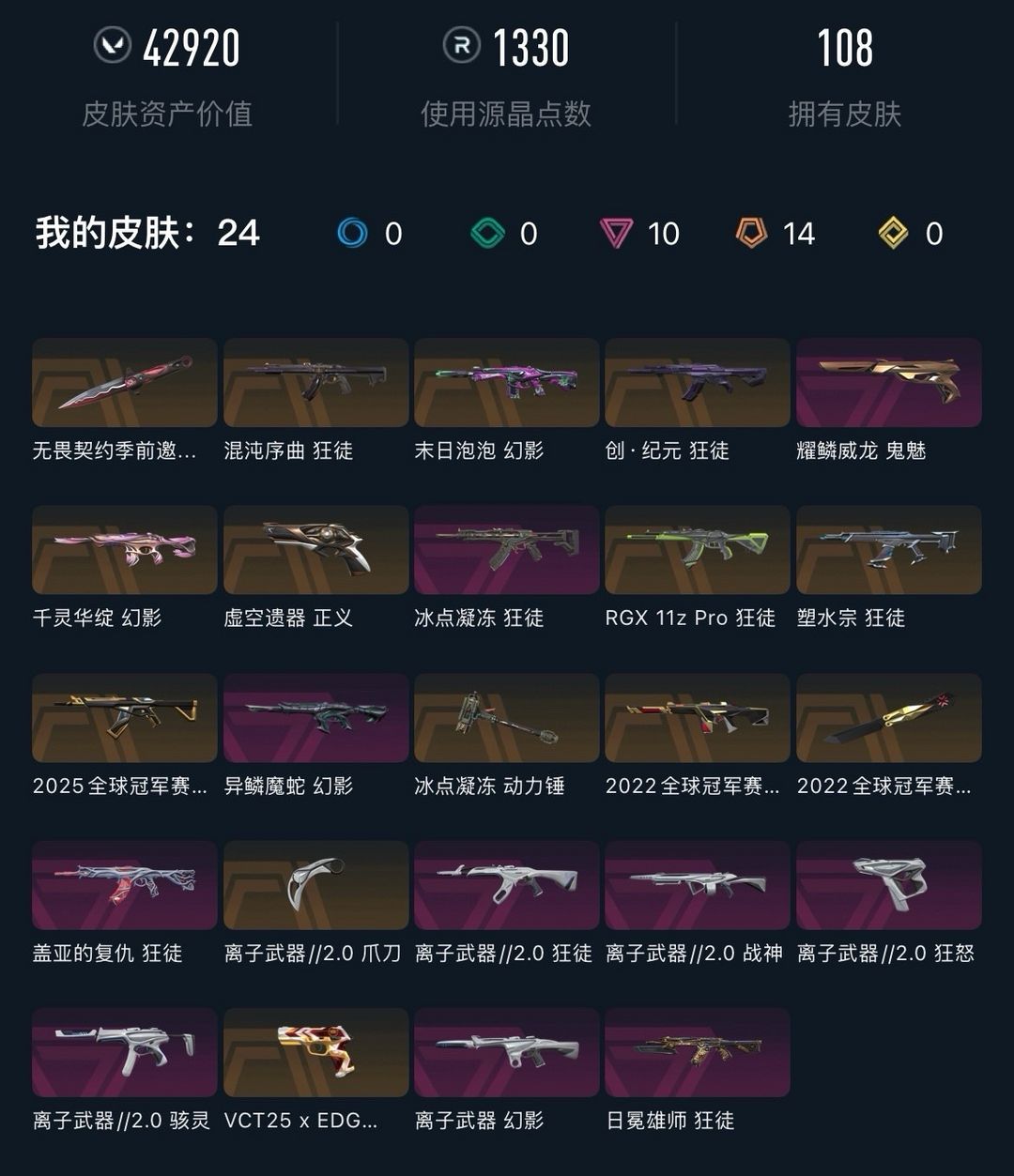 武器皮肤数量:108