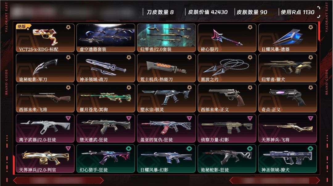 武器皮肤数量:90