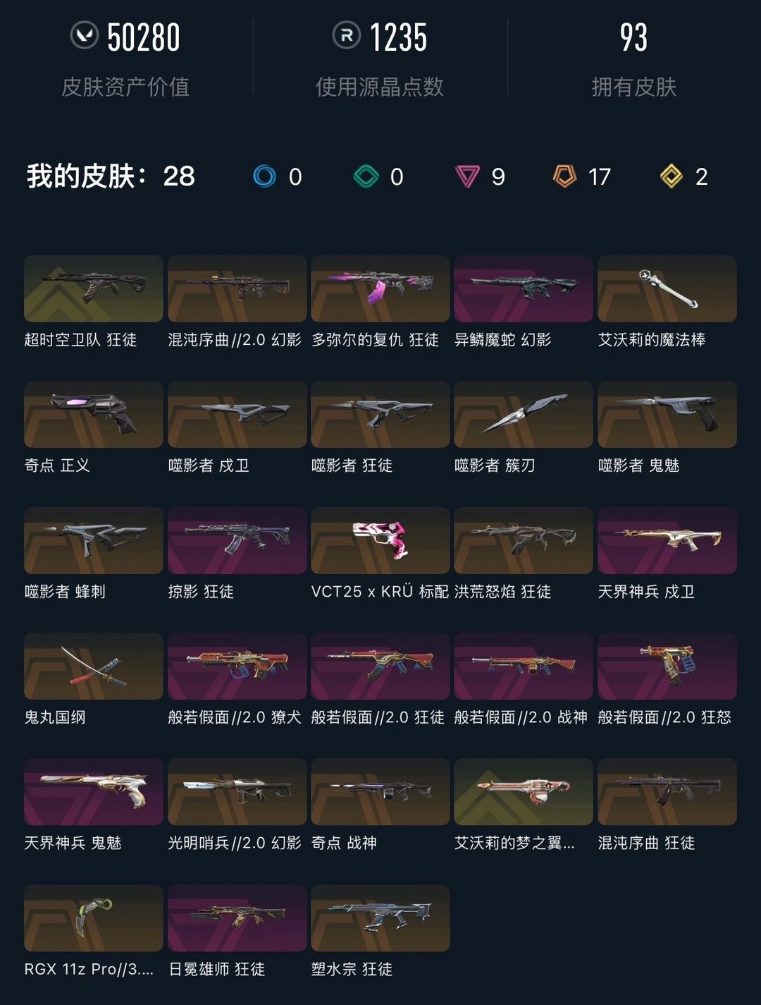 武器皮肤数量:95