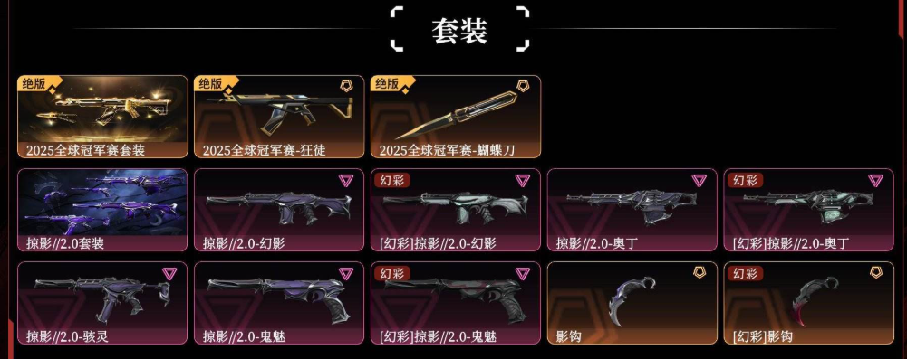 禁止挂机禁止炸鱼❤25冠军掠影套❤光荣异象塑水宗盖亚狂徒❤黯夜幻影❤堕天起源冥驹❤VCT标配奇点正义