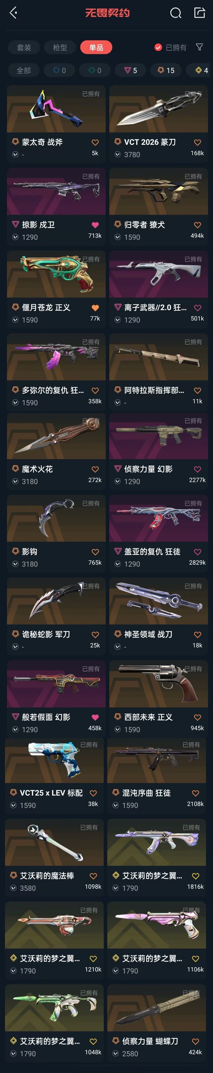 传奇数量:15
