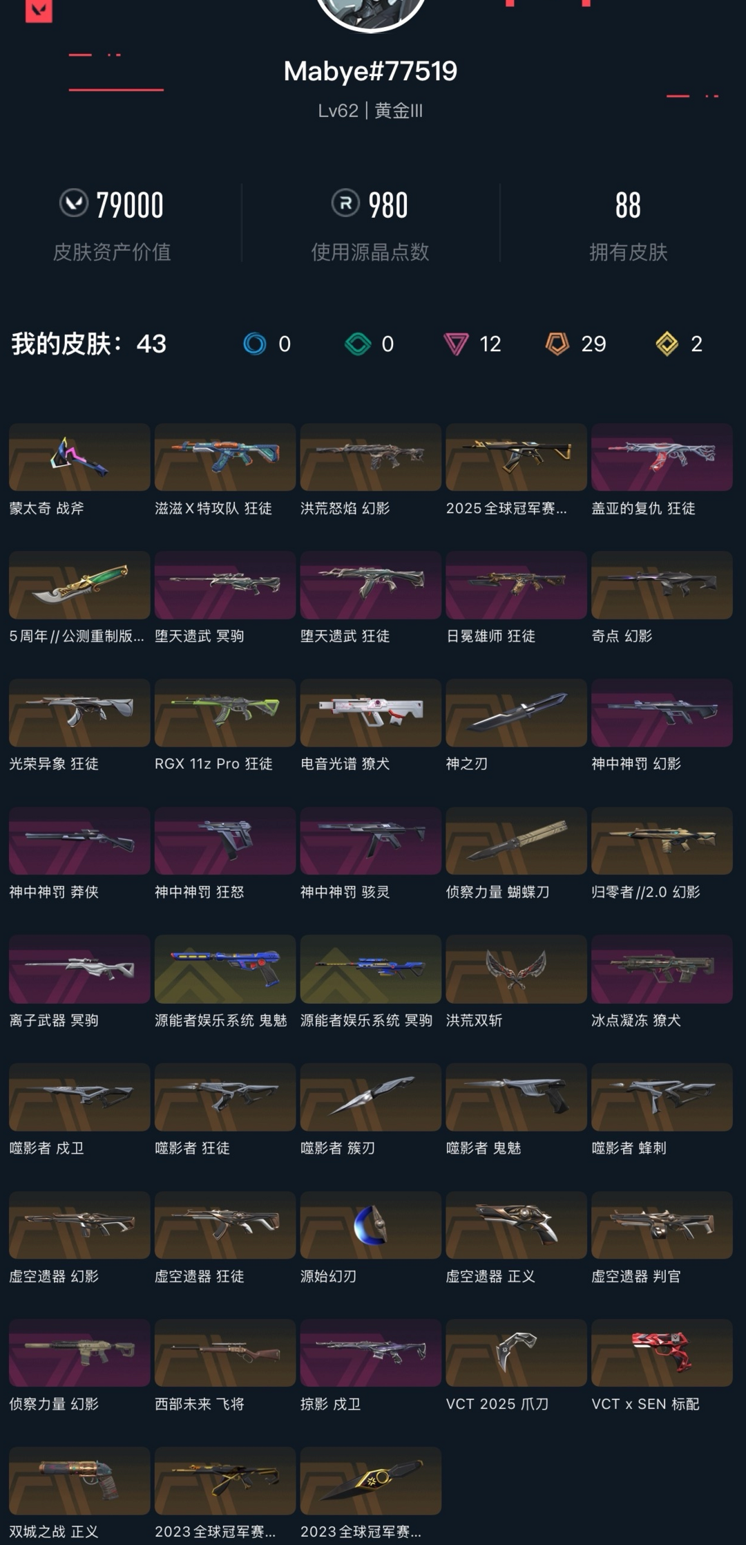 开挂必起诉✅可排位VCT爪⭐23/25冠套⭐神罚噬影者虚空套⭐光荣盖亚弃王特攻ak⭐侦查m4⭐弃王驹