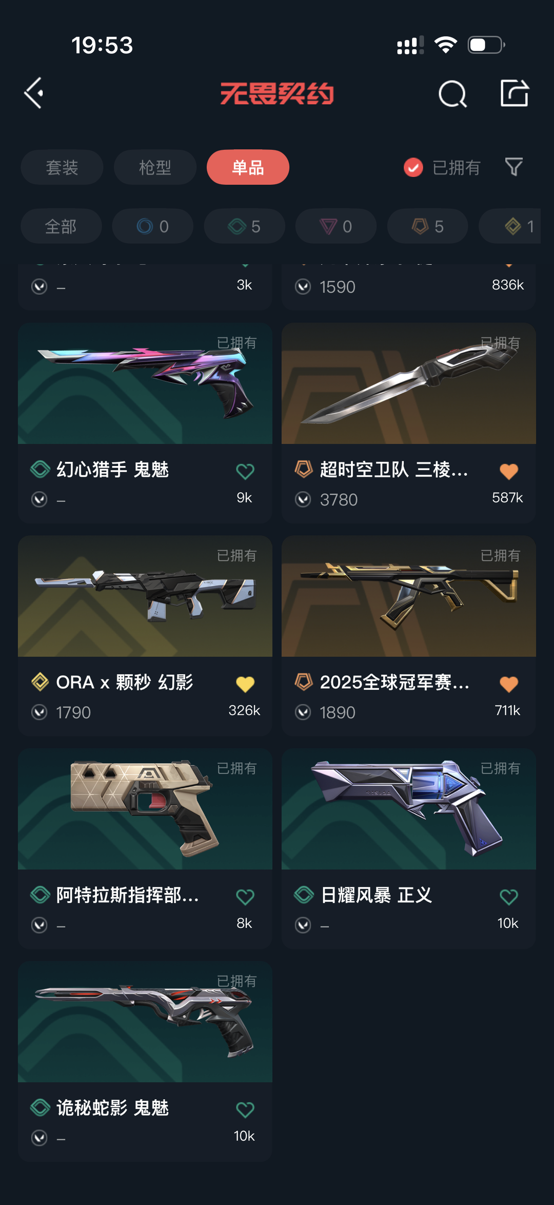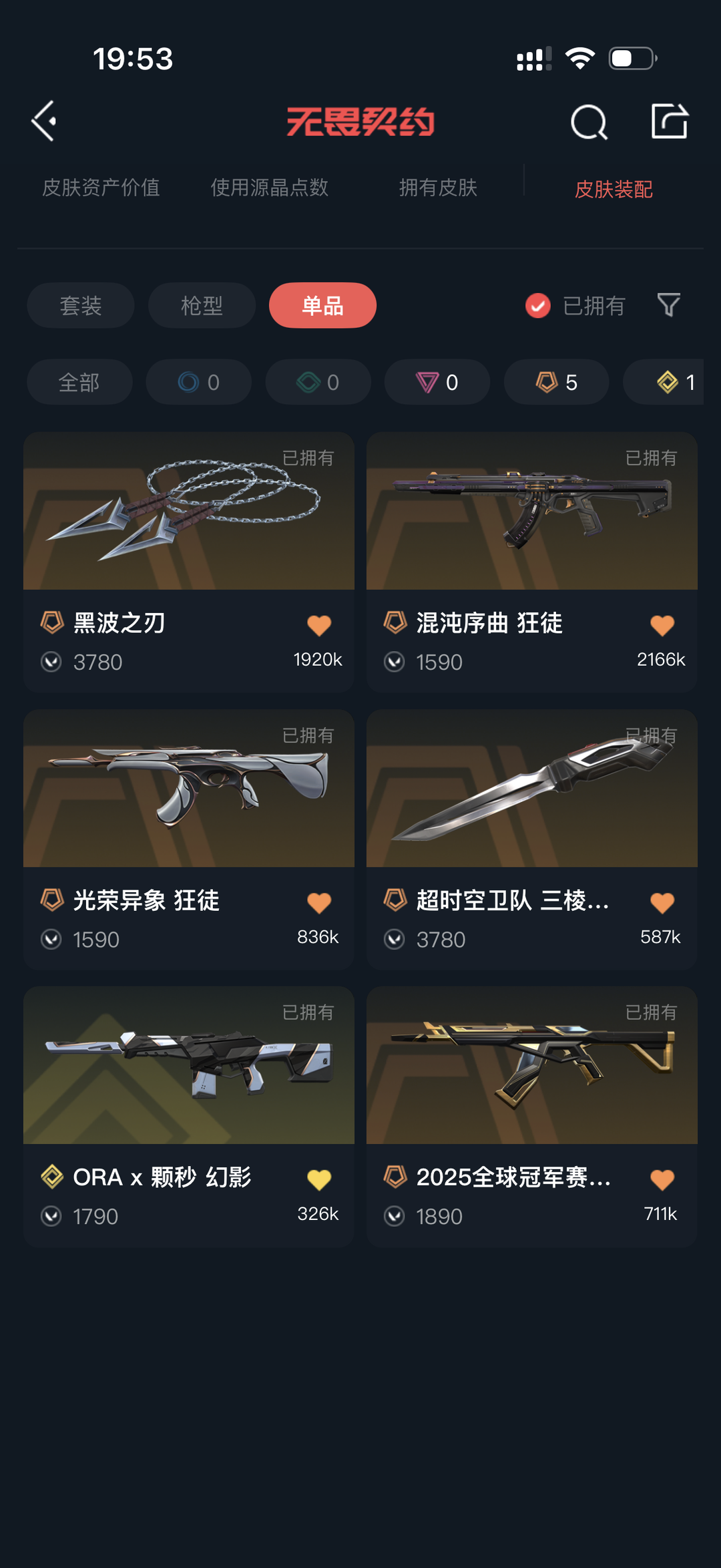 可排位⭐超时空卫队三菱军刺⭐黑波之刃⭐25全球冠军狂徒⭐光荣异象狂徒⭐混沌序曲狂徒⭐ORA*颗秒幻影