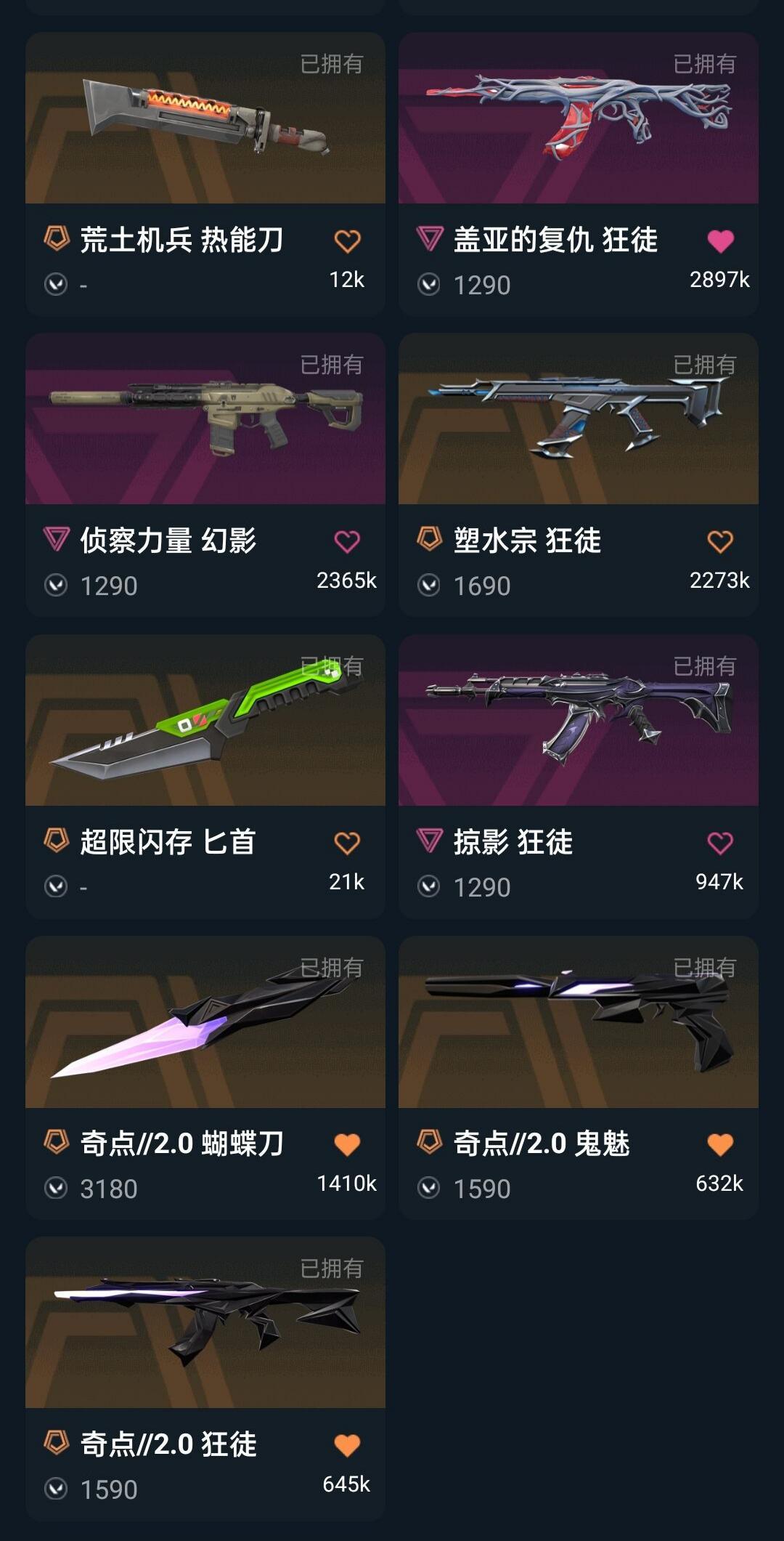 禁排 超时空套2022冠军套奇点2.0套悲悯显卡爪刀苍龙之刃光荣紫阙盖亚塑水宗掠影混沌流脓狂徒侦察幻