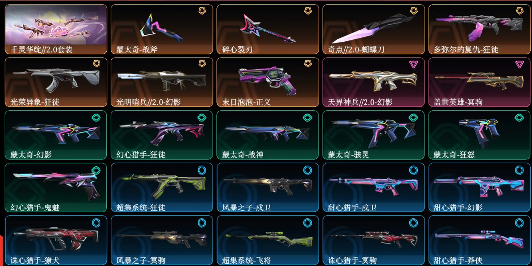 可排❤千灵2.0套装❤奇点2.0蝴蝶刀❤多弥尔异象狂徒❤光明哨兵2.0天界神兵2.0幻影❤盖世冥驹