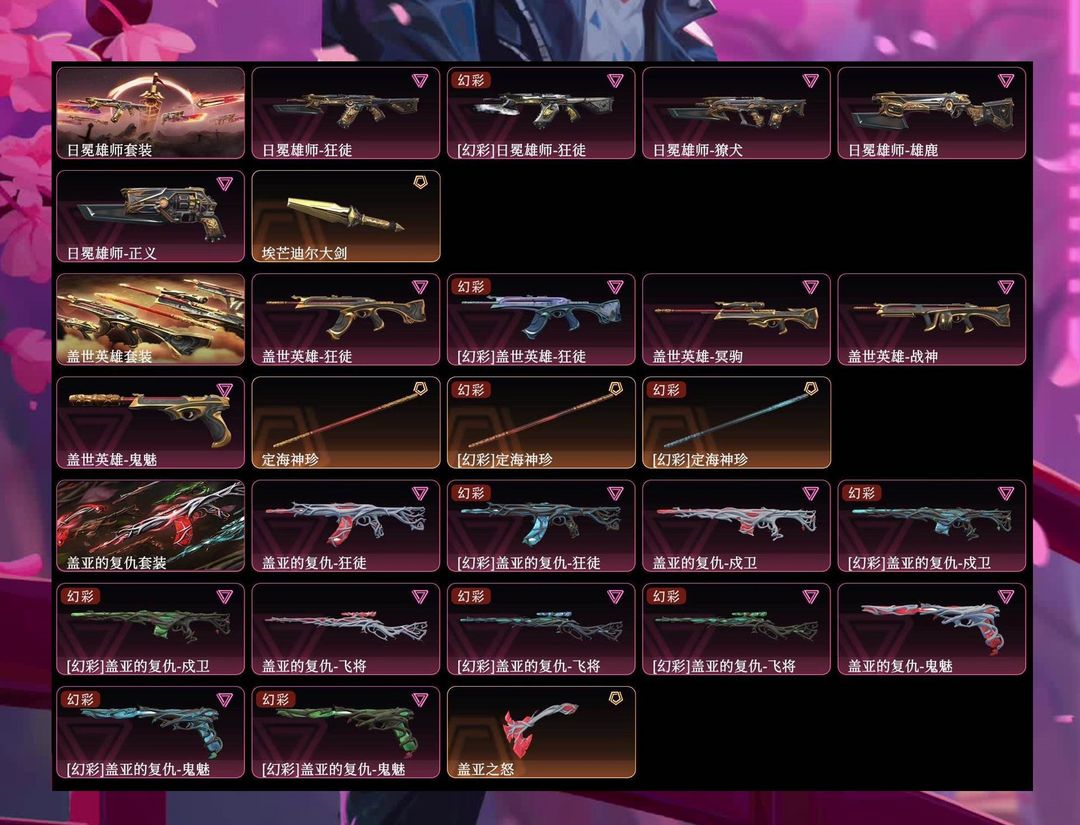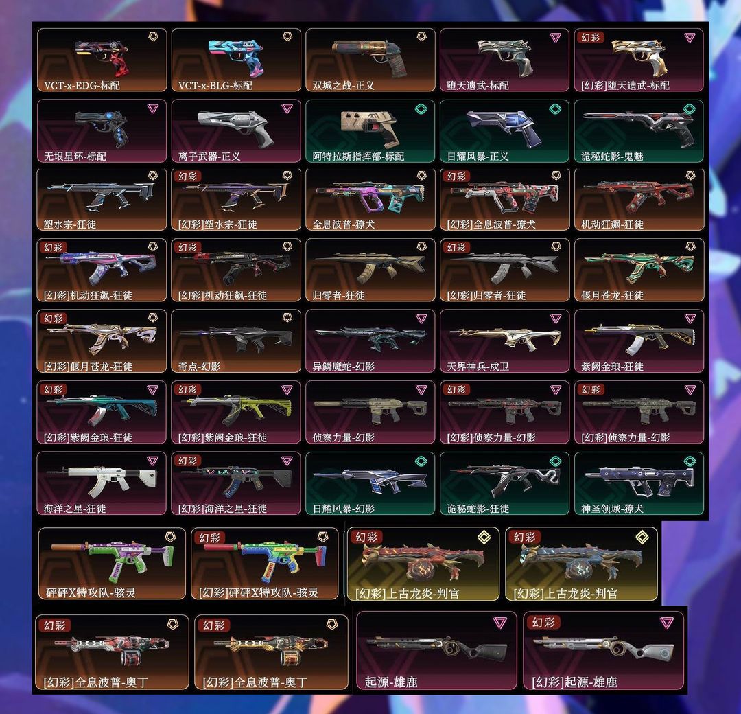装备描述:21冠军套+离火刃+24冠军套+23冠军套+22冠军套+爆爆ak+爆爆拳套+爆爆正义+vct25爪刀+混沌一套 全息一套 电玩一套 莲花一套 盖亚一套 狮子一套 猴子盖世英雄一套 埃芒迪尔大剑 定海神针 塑水宗 摩托 归零 蛇年m4 异鳞魔蛇 紫金 天界 海洋之星 上古龙炎 起源 无限星环 堕天遗武 24edg标配 blg标配