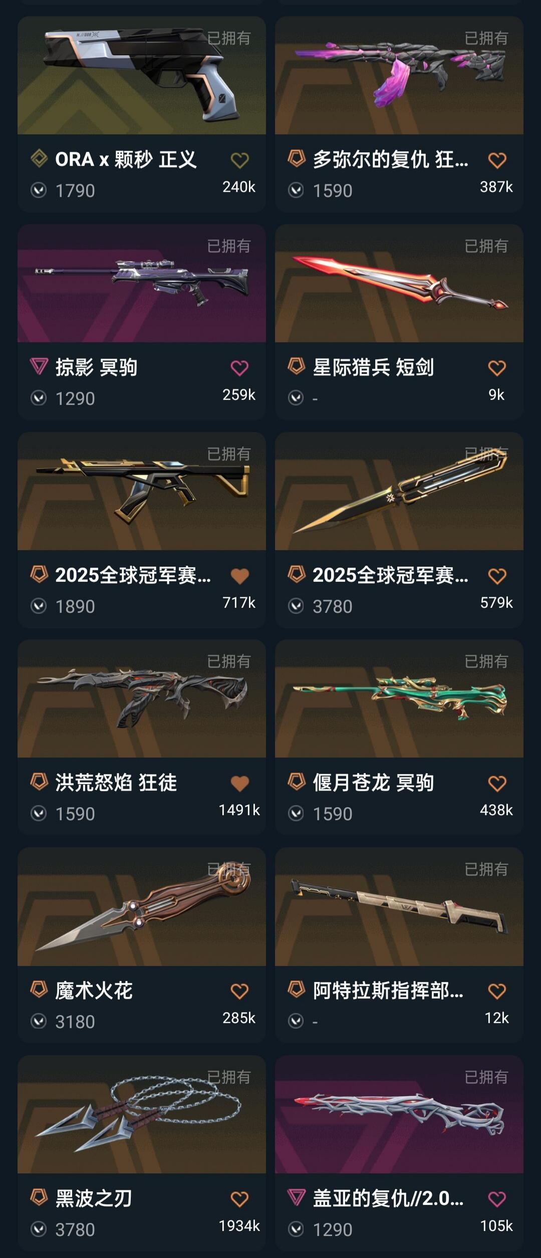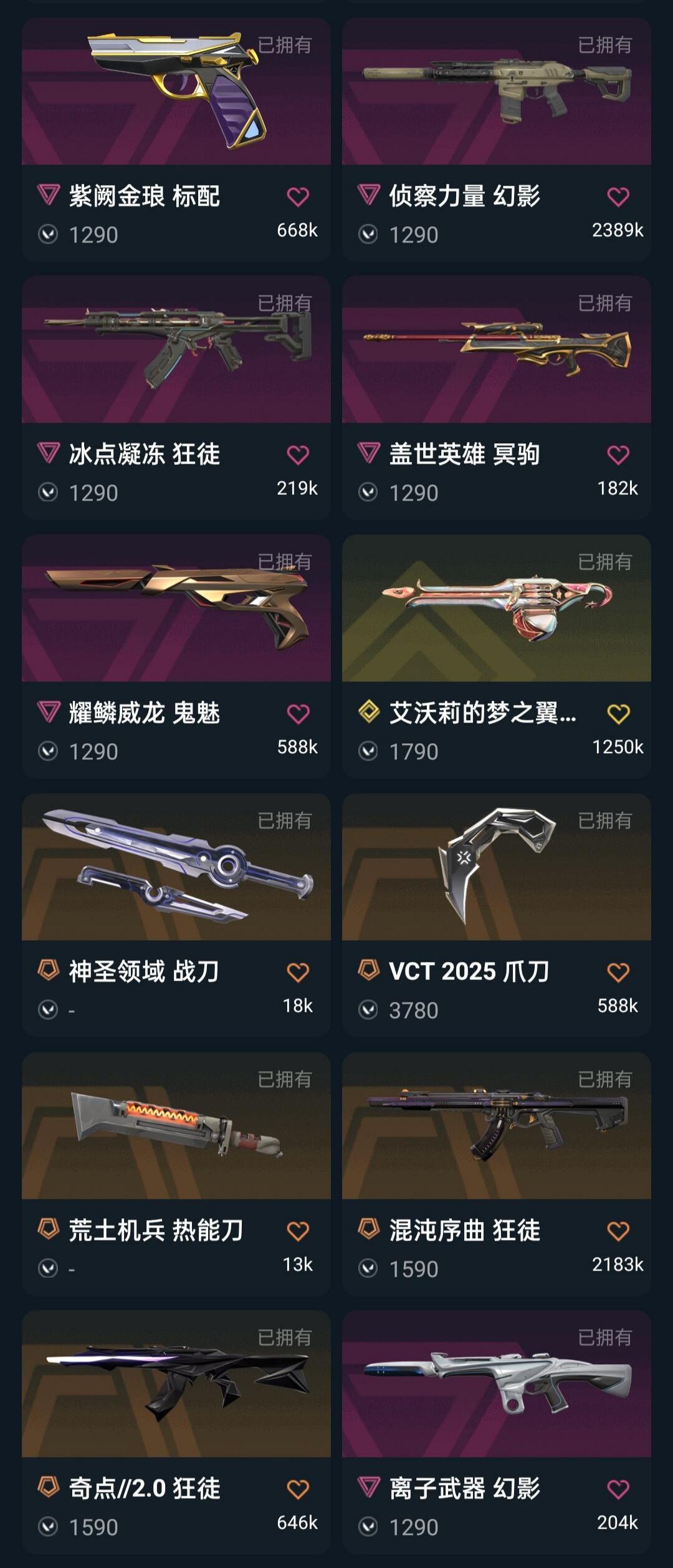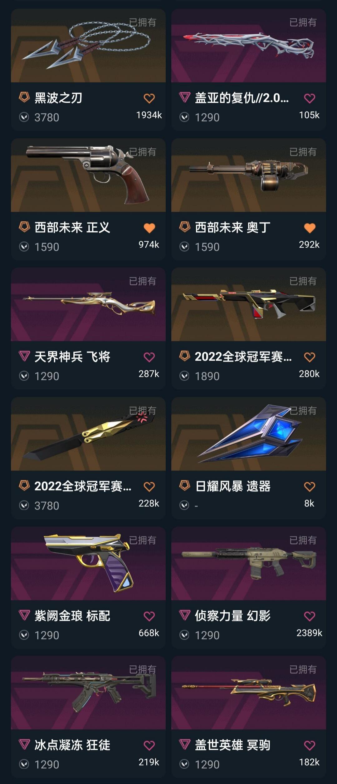 禁排 22冠军套25冠军套ORA颗秒套VCT25爪刀黑波魔术火花多弥尔流脓混沌奇点狂徒侦察幻影西部正