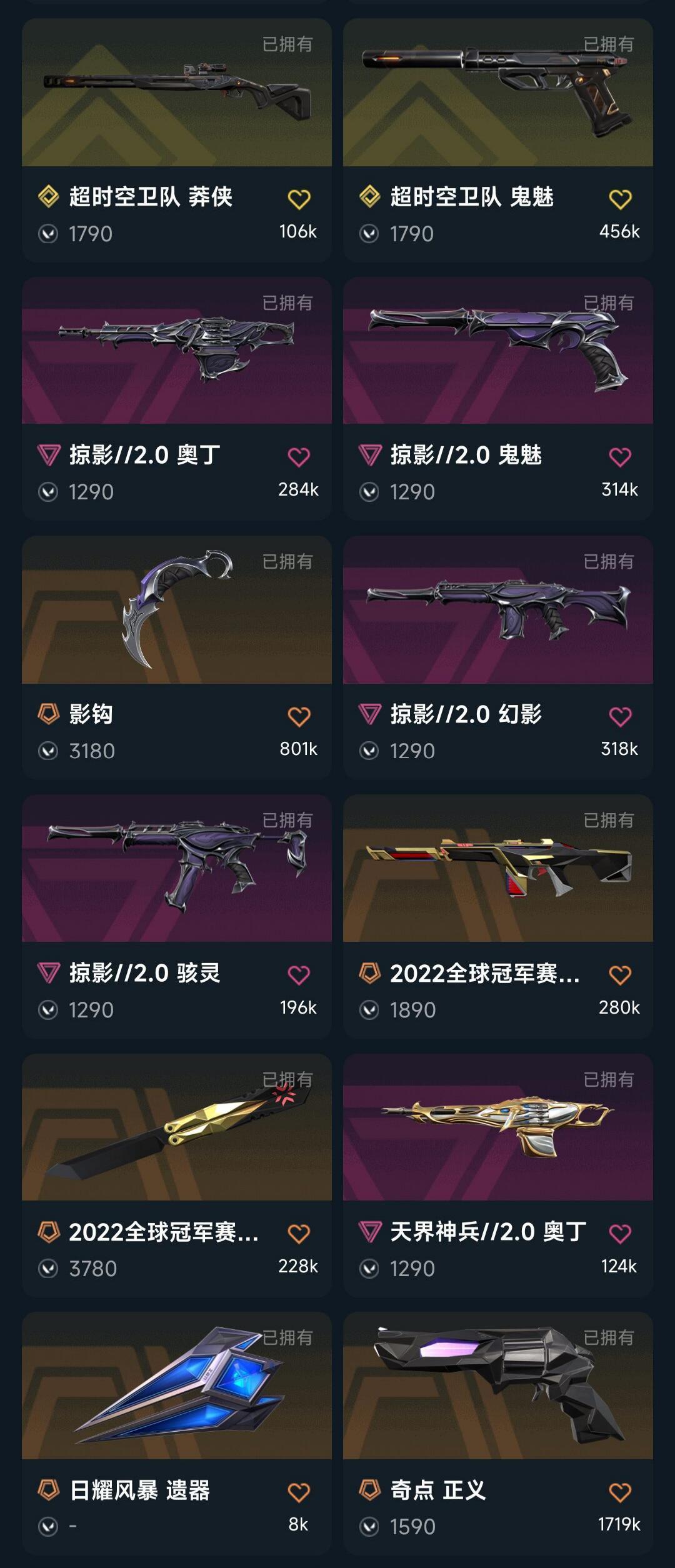 22冠军套25冠军套掠影超时空套2.0礼包显卡混沌光荣盖亚紫阙堕天离子狂徒侦察黯夜幻影影钩