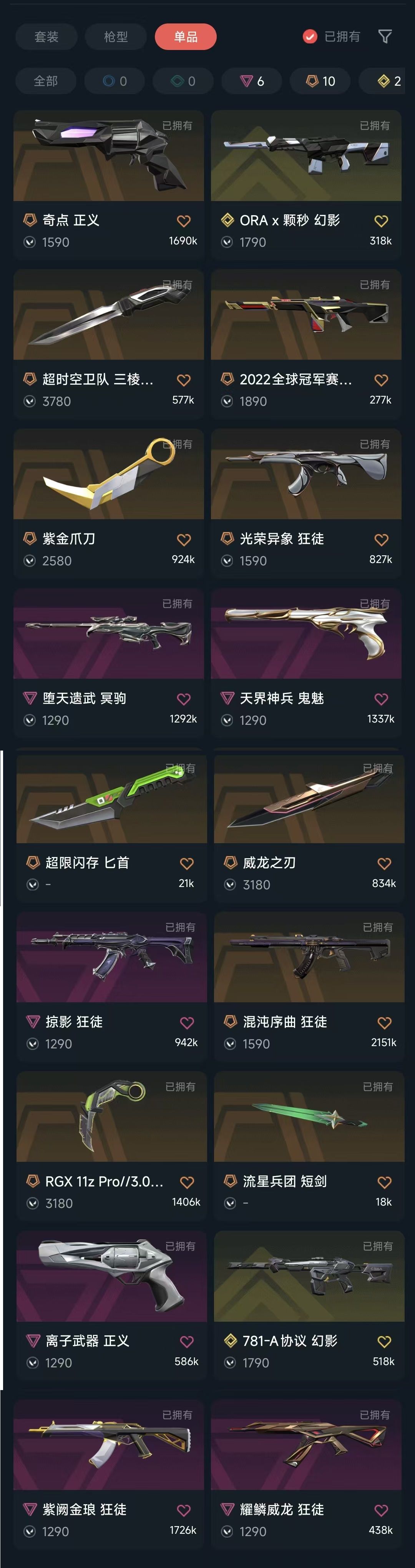 可排❤超时空三棱刺紫金显卡爪刀威龙之刃❤混沌紫金掠影光荣威龙狂徒❤颗秒幻影❤奇点离子正义❤弃王狙