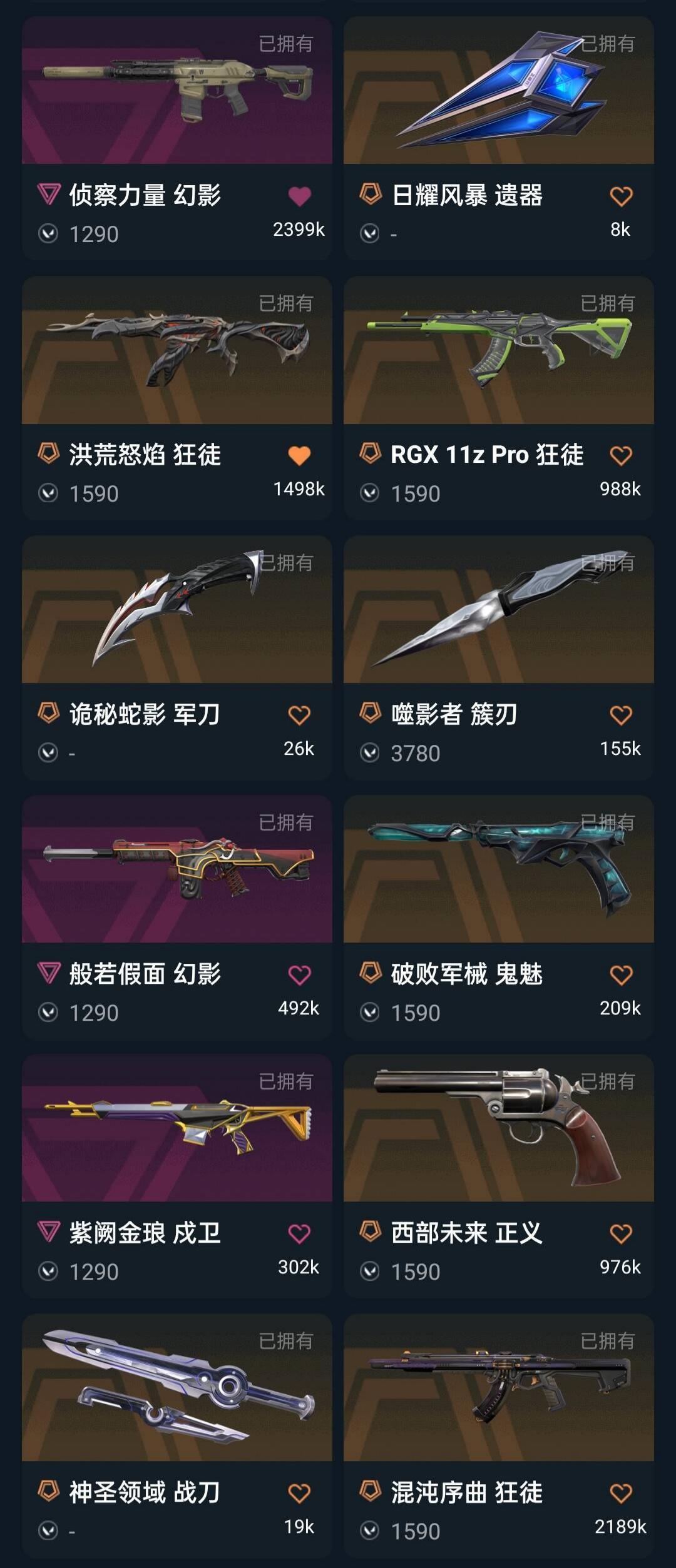 武器皮肤数量:114