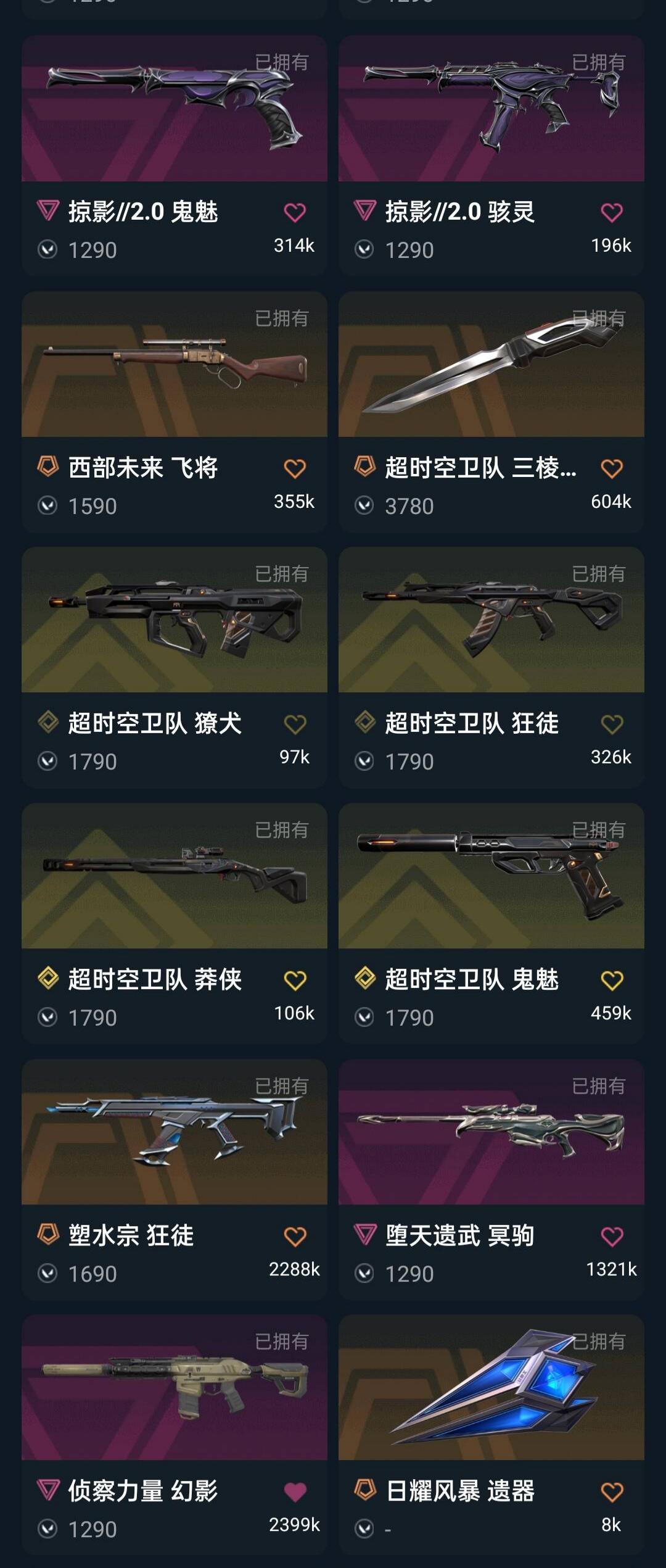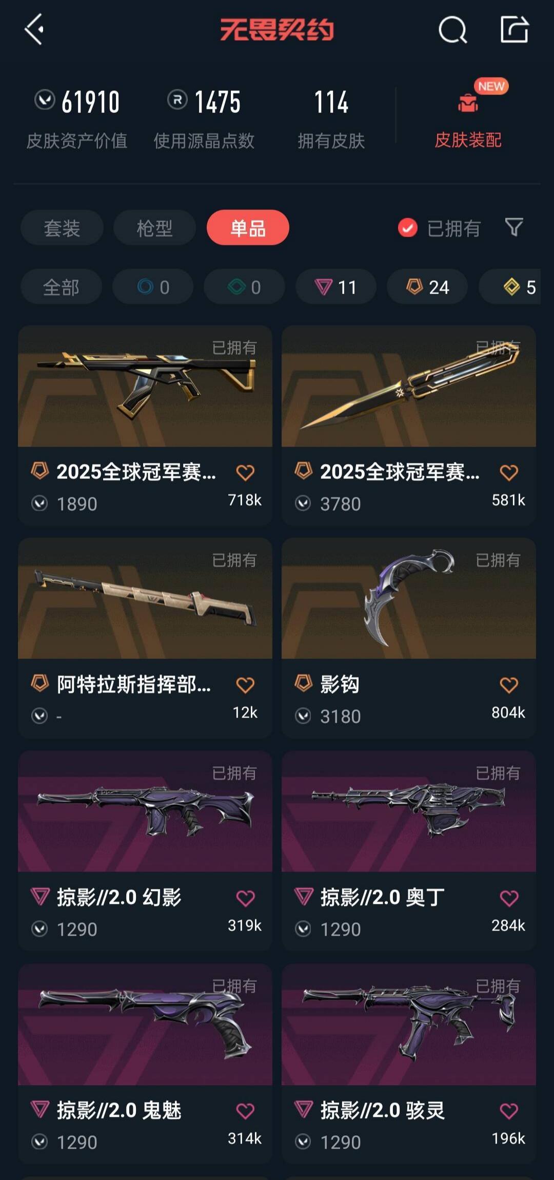 2025冠军套超时空套掠影套影钩显卡爪刀显卡混沌塑水宗堕天猫猫机动流脓狂徒莲花侦察幻影