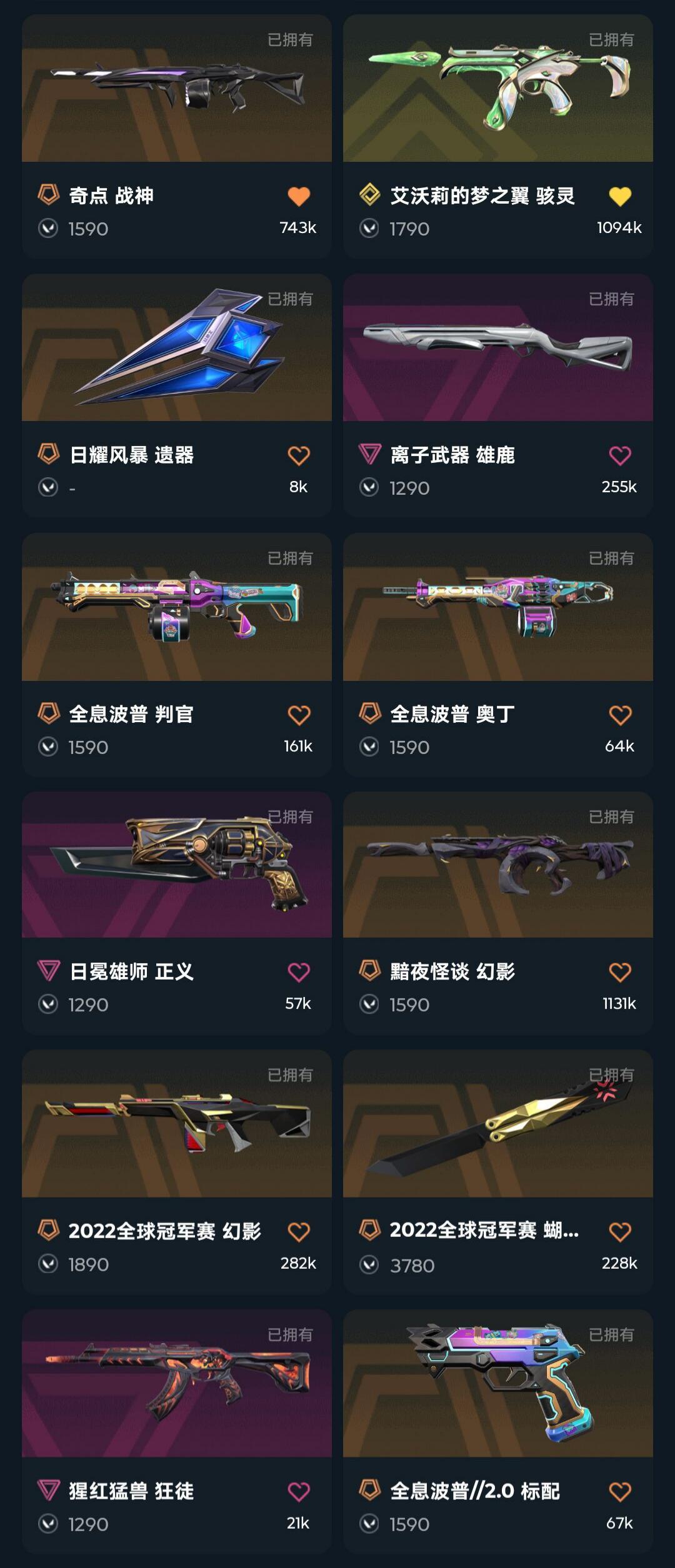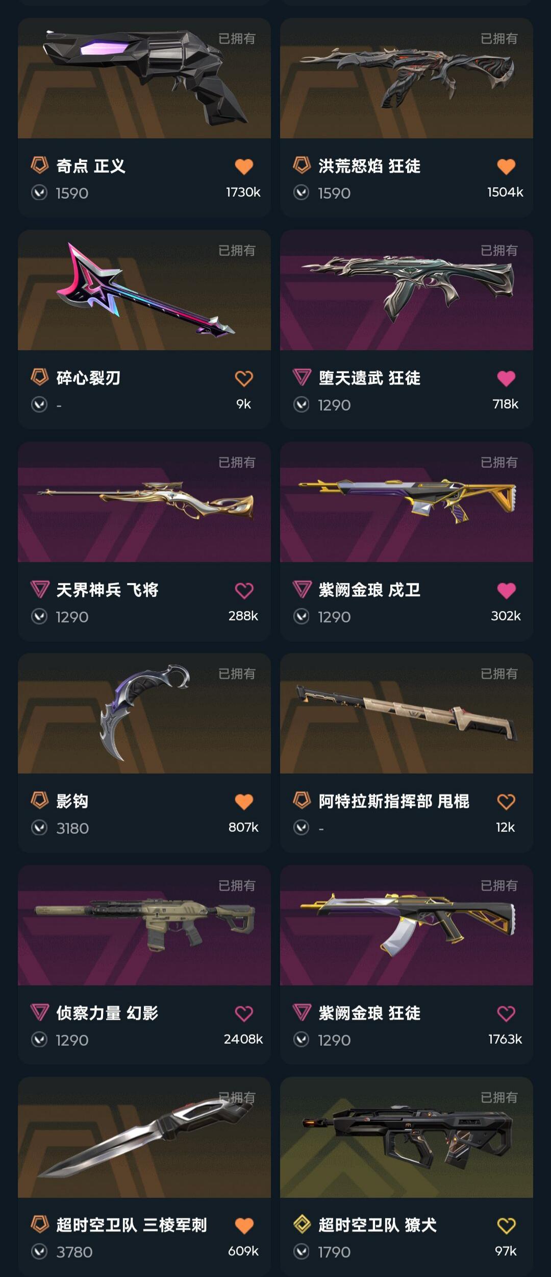 VCT26篆刀超时空套2022冠军套影钩紫阙日冕堕天流脓狂徒黯夜侦察幻影猫猫骇灵西部奇点正义