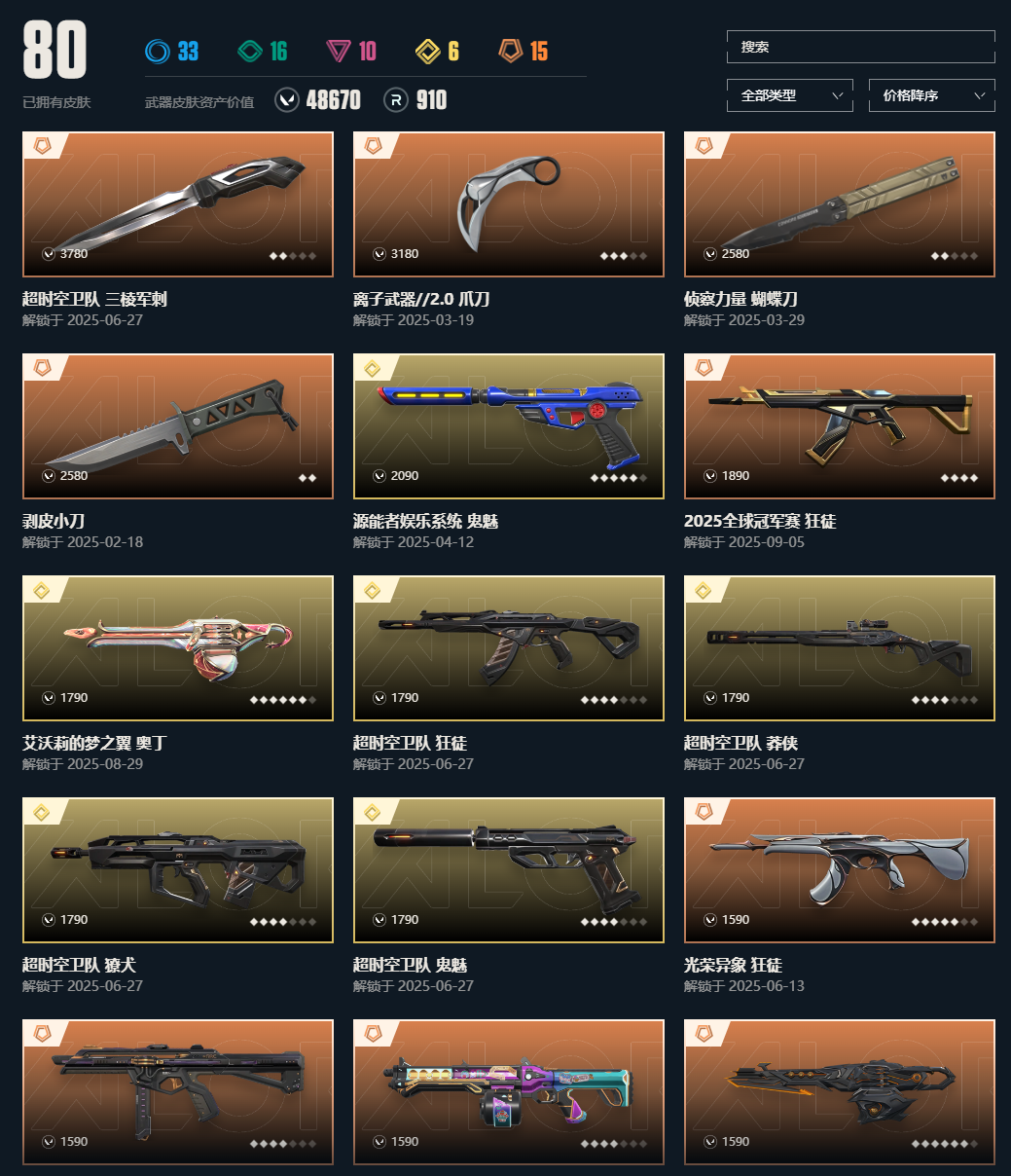 武器皮肤数量:80