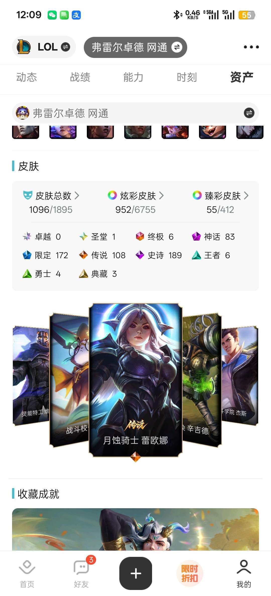 1096皮,956炫彩,55臻彩,高质量个人号。云顶至臻盲僧,剪纸刀妹,福根酒馆水天云梦。