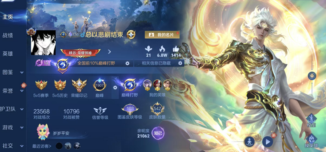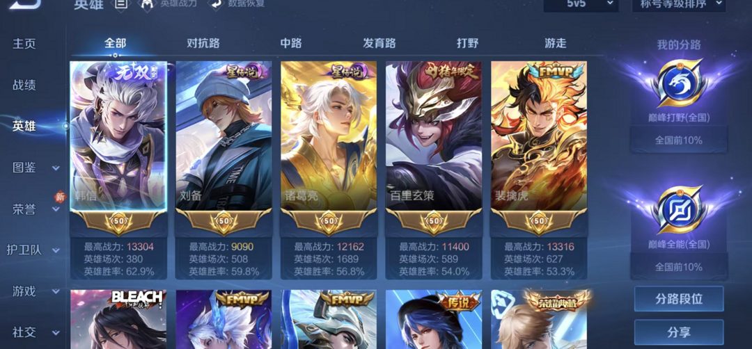 男神号✨四月在榜全国百分之十巅峰打野小魔方✨5典藏无双神罪螭龙剑花合斗碎月剑心踏浪归弑枪猎影怪盗基德