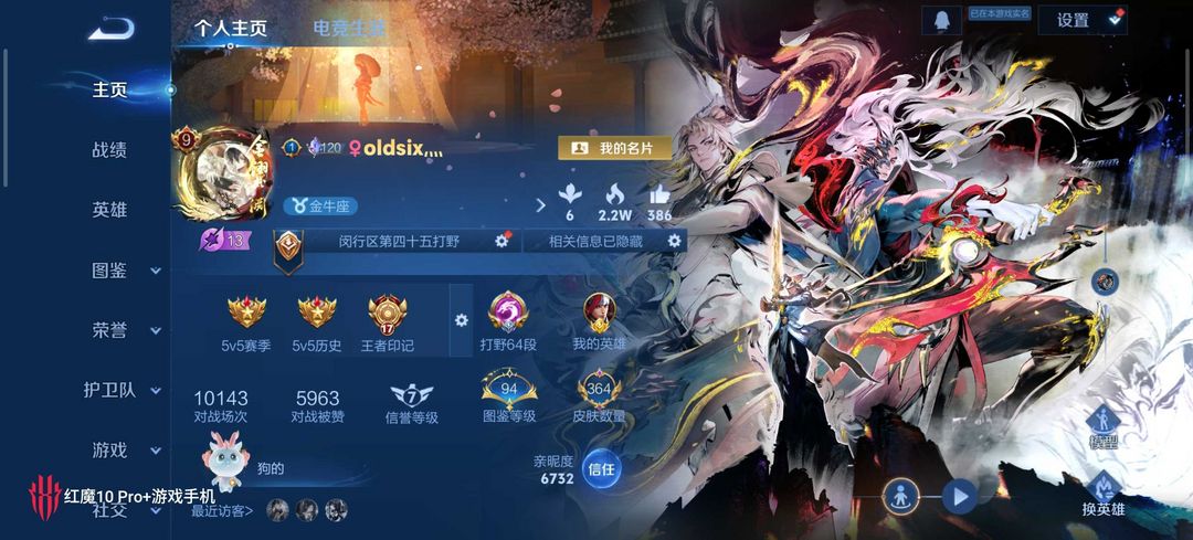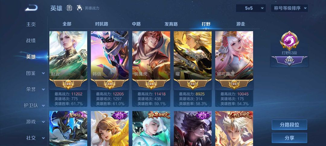 4无双⭐63段打野高质量皮肤号⭐含天机白泽⭐曜螭龙剑⭐韩信群星魔术团⭐问心剑+3典藏猴子,铠,韩信