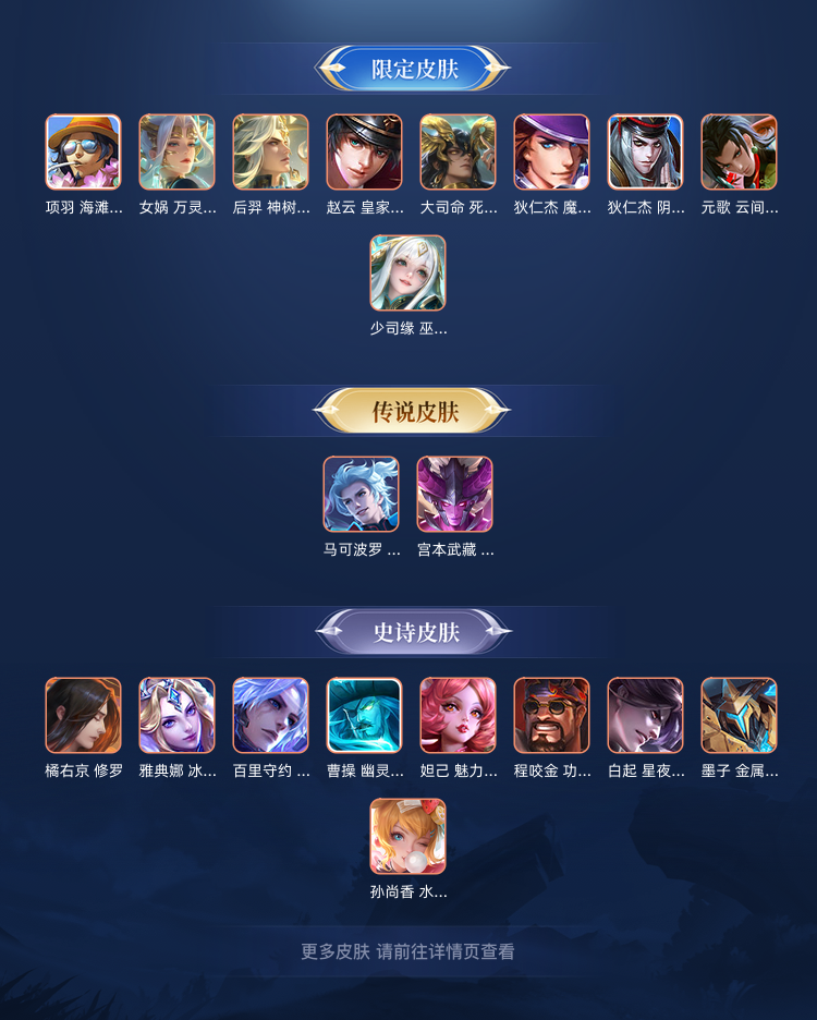 凯无双♥诸葛亮无双♥李白无双♥万灵启世♥千山共赴♥死亡执行官♥深海之息♥云诺千山♥修罗