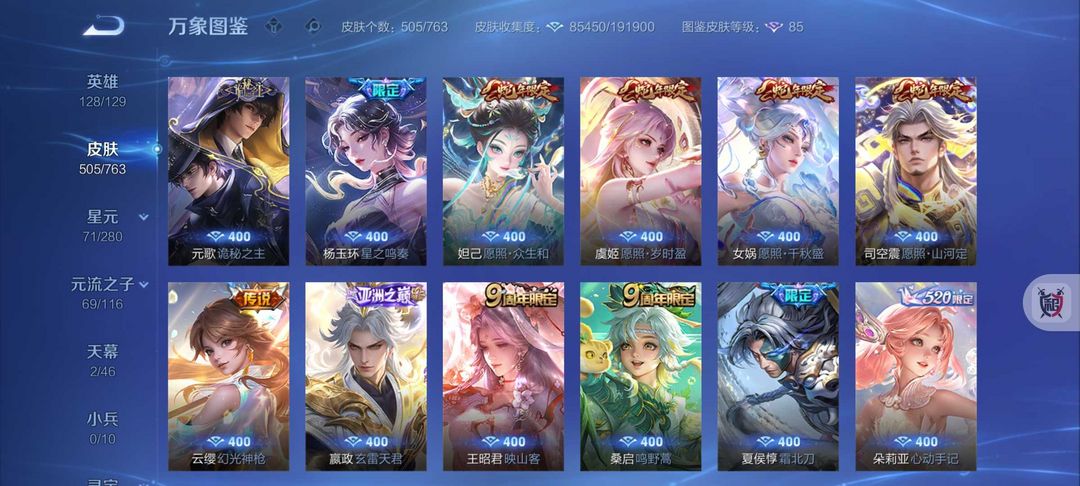 装备描述:505皮肤3典藏2无双皮❤51传说❤凯神罪花合斗满十周年❤诡秘之主联动蛇年限定❤