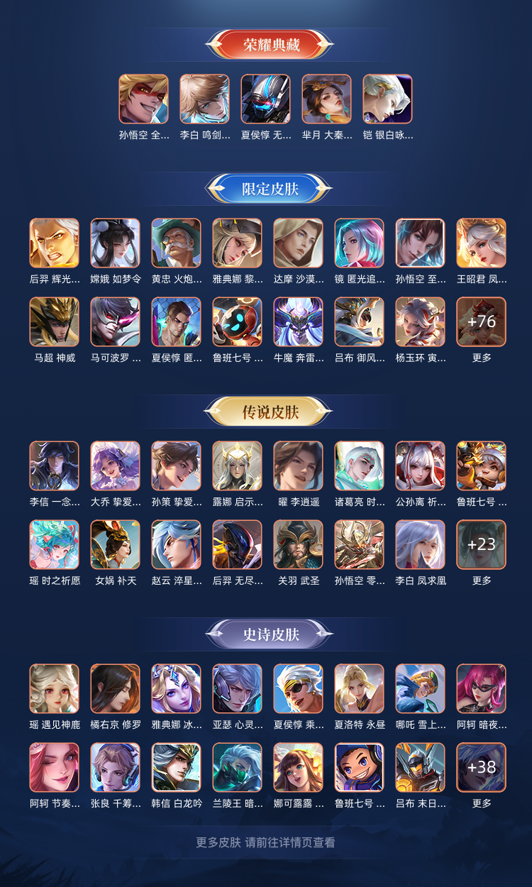 【V10 457皮】5荣耀典藏 段位星耀四 无限飓风号 李逍遥 启示之音 无双飞将 武圣 梅西