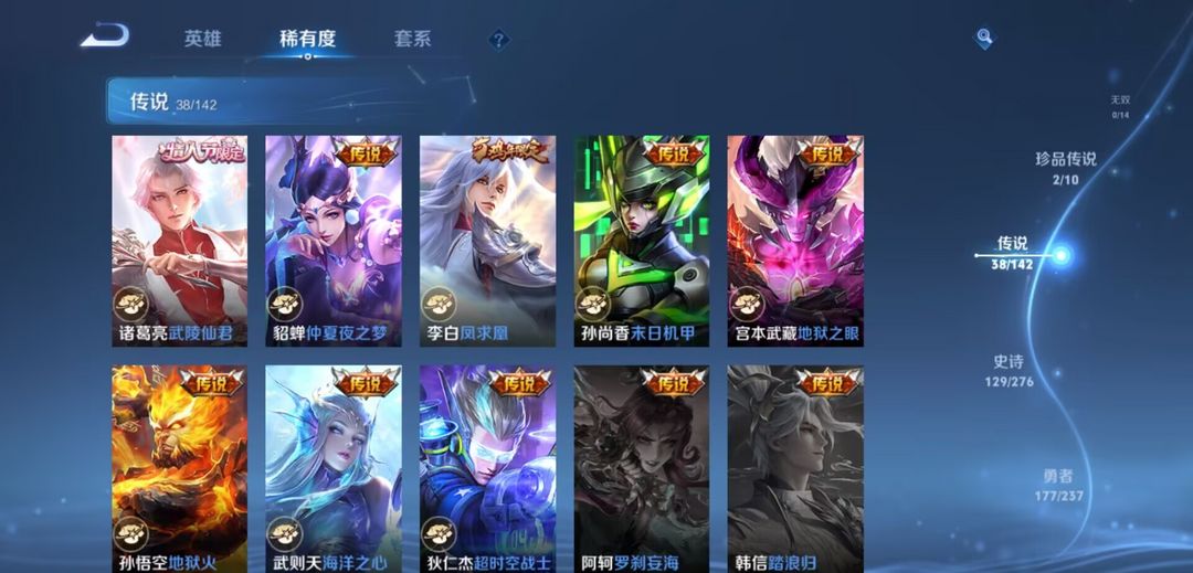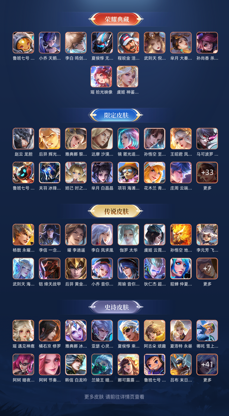 限制: 撤单率<50%才可租用此帐号装备描述:✨ 账号核心皮肤展示 荣耀典藏(10 款): 瑶・拾光映像、虞姬・神鉴启示录、李白・鸣剑・曳影、武则天・倪克斯神谕、程咬金・活力突击、夏侯惇・无限飓风号、鲁班七号・星空梦想、孙尚香・杀手不太冷、小乔・天鹅之梦、芈月・大秦宣太后 珍品传说(2 款): 孙策・时之奇旅、马可波罗・怪盗基德 星传说(3 款): 星际治安官、未来机甲、幽冥火 热门传说皮肤(部分): 刘备・时之恋人、伽罗・太华、貂蝉・猫影幻舞、李白・凤求凰、李信・一念神魔、马超・无双飞将、曜・李逍遥、镜・炽阳神光、孙尚香・末日机甲、宫本武藏・地狱之眼、孙悟空・地狱火、武则天・海洋之心等 38 款传说皮肤