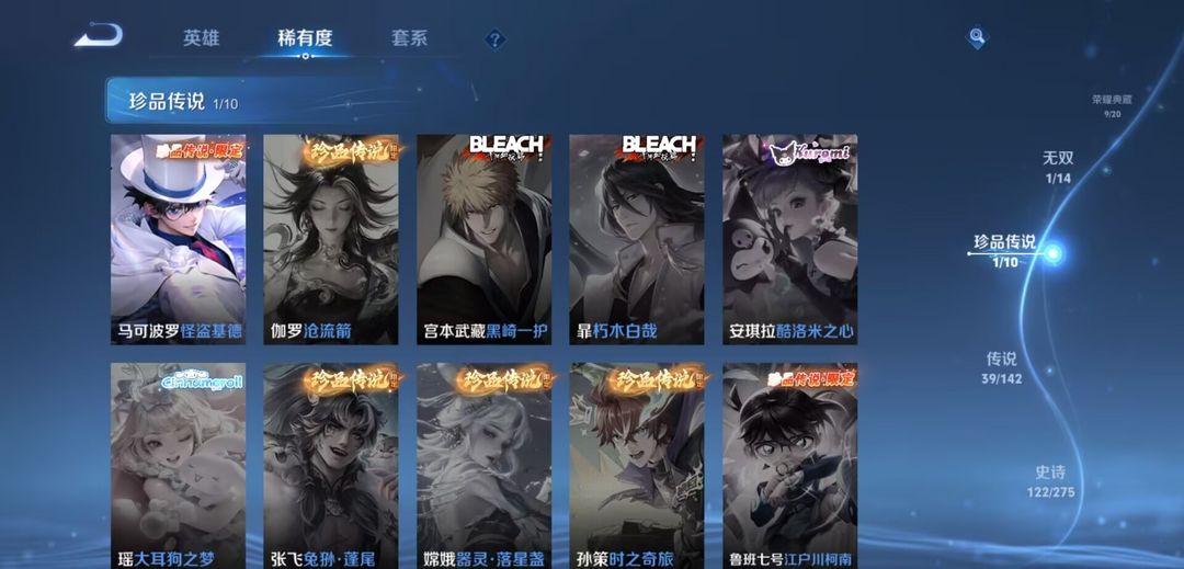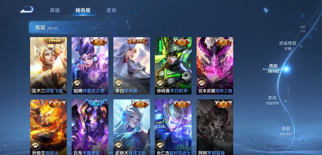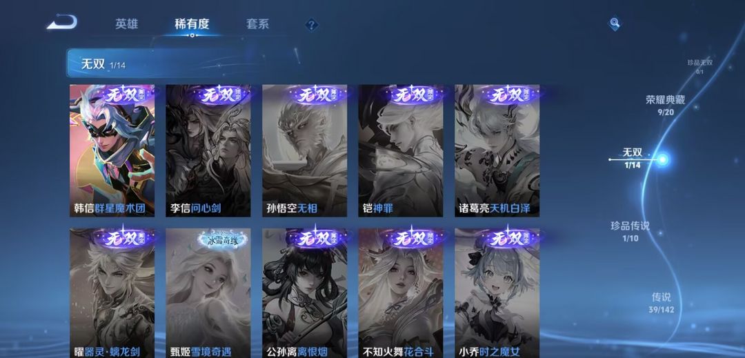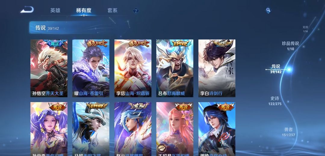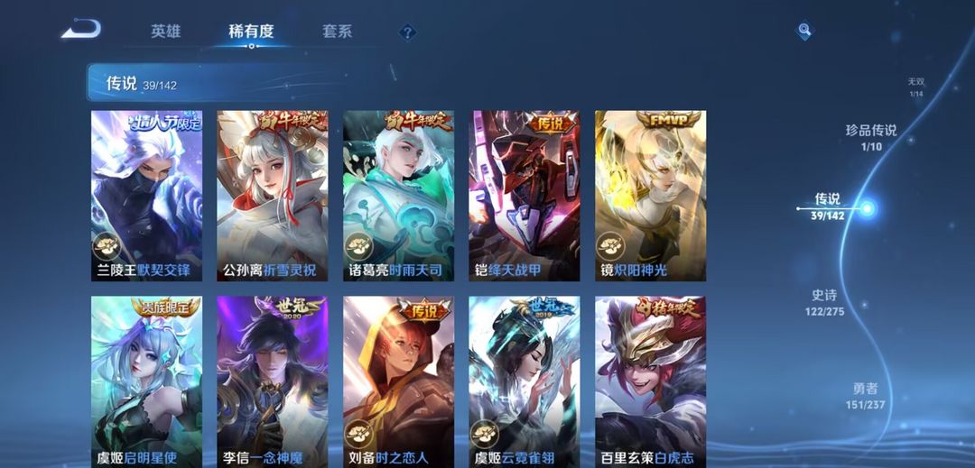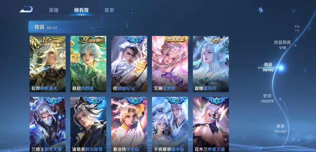 开心上分V10无双1珍传1传说39 史诗121•皮肤数量399•全皮夏洛特+弑枪猎影+九霄神辉