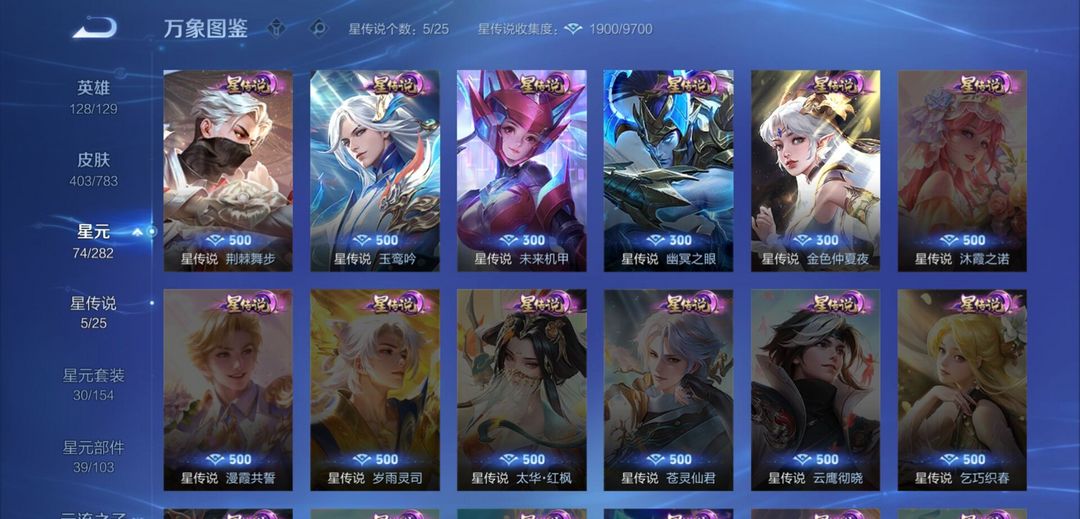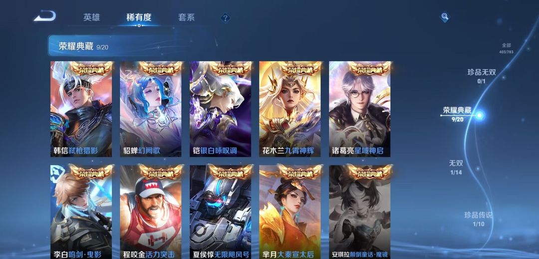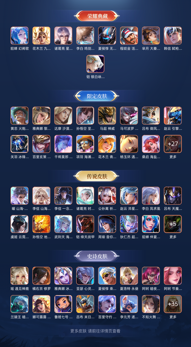 限制: 撤单率<50%才可租用此帐号装备描述:✅ 全英雄解锁:128/129 英雄,几乎全英雄,全位置畅玩无限制! ✅ 荣耀典藏(9 款): 韩信・弑枪猎影、貂蝉・幻阙歌、铠・银白咏叹调、花木兰・九霄神辉、诸葛亮・星域神启、李白・鸣剑曳影、程咬金・活力突击、夏侯惇・无限飓风号、芈月・大秦宣太后 ✅ 无双皮肤(1 款): 韩信・群星魔术团 ✅ 珍品传说(1 款): 马可波罗・怪盗基德 ✅ 星传说(5 款): 兰陵王・荆棘舞步、李白・玉鸾吟、孙尚香・未来机甲、宫本・幽冥之眼、貂蝉・金色仲夏夜 ✅ 热门传说皮肤(部分展示): 李信・一念神魔、曜・云鹰飞将、花木兰・冠军飞将、宫本・地狱之眼、孙尚香・末日机甲、貂蝉・仲夏夜之梦、李白・凤求凰、吕布・天魔缭乱、孙悟空・地狱火等 ✅ 额外内容:403 款皮肤,5 星传说,收藏等级拉满,限定天幕、联名小兵皮肤