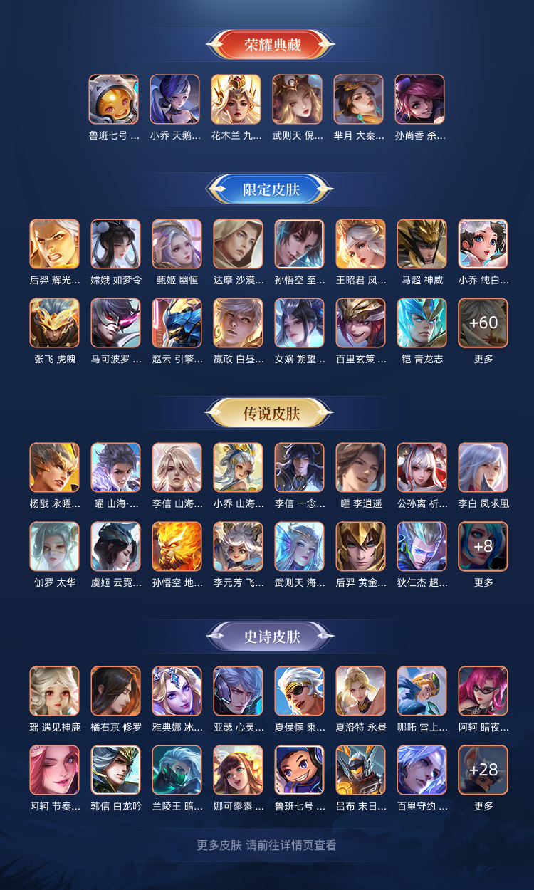 限制: 撤单率<50%才可租用此帐号装备描述:✅ 英雄解锁:128/129 英雄,几乎全英雄,全位置畅玩无限制! ✅ 荣耀典藏(6 款): 花木兰・九霄神辉、武则天・倪克斯神谕、鲁班七号・星空梦想、孙尚香・杀手不太冷、小乔・天鹅之梦、芈月・大秦宣太后 ✅ 无双皮肤(1 款): 曜・器灵・螭龙剑 ✅ 珍品传说(1 款): 伽罗・沧流箭 ✅ 热门传说皮肤(部分展示): 李信・一念神魔 / 山海・炽霜斩、曜・李逍遥 / 云鹰飞将、花木兰・冠军飞将、宫本・地狱之眼、孙尚香・末日机甲、貂蝉・仲夏夜之梦、李白・凤求凰、吕布・天魔缭乱、孙悟空・地狱火、后羿・神树通天 / 黄金射手座等 ✅ 星传说(3 款): 孙尚香・未来机甲、宫本武藏・幽冥之眼、貂蝉・金色仲夏夜 ✅ 额外内容:347 款皮肤,69 级精英收藏家,图鉴等级 89 级,限定灵宝、神骥 / 兔年限定皮肤拉满