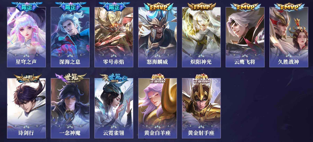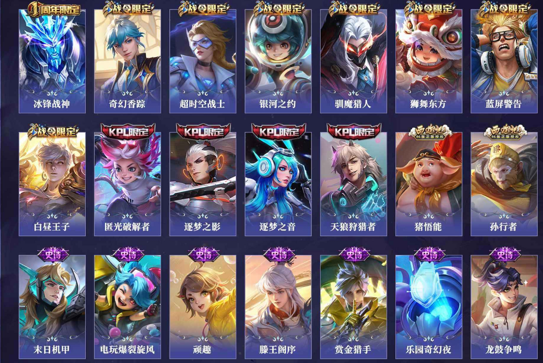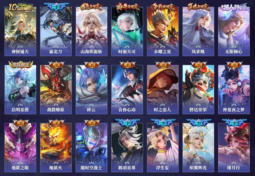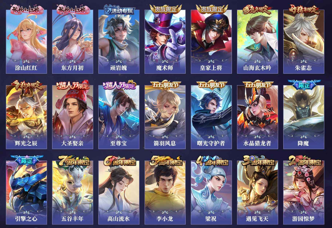 凯荣耀典藏✨公孙离无双✨马克深海之息✨杨戬狗年限定✨李白凤求凰✨猴子至尊宝✨关羽冰封战神✨