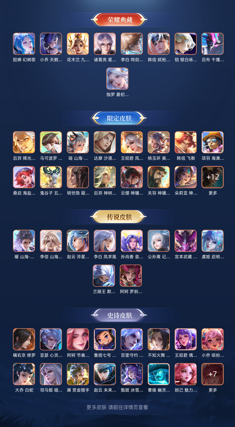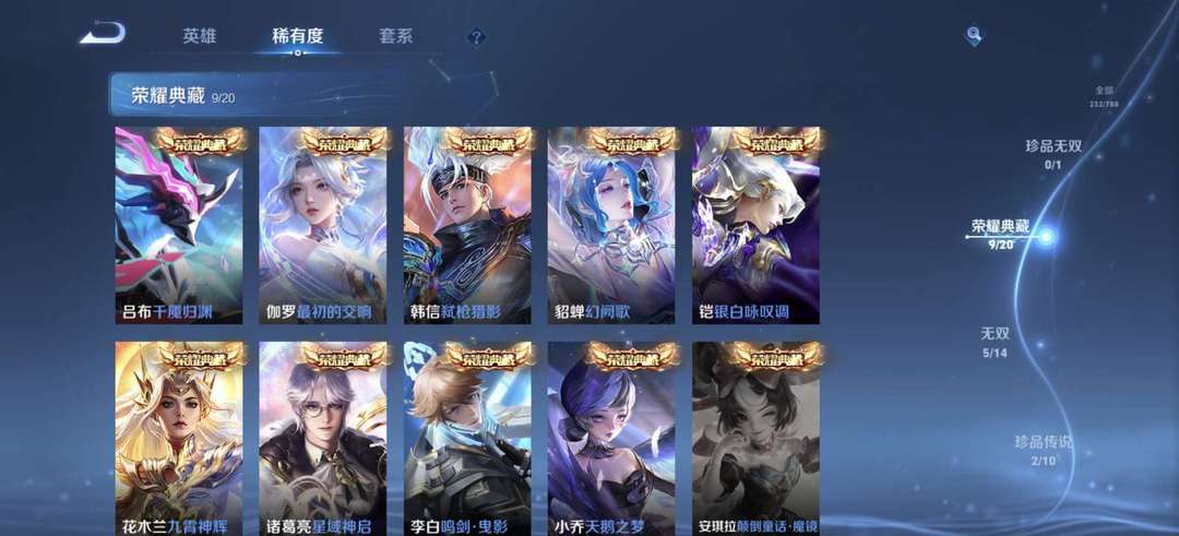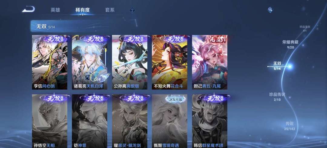 9荣耀典藏,5无双,马年全皮,2珍品传说,英雄除了武则天都有可排位