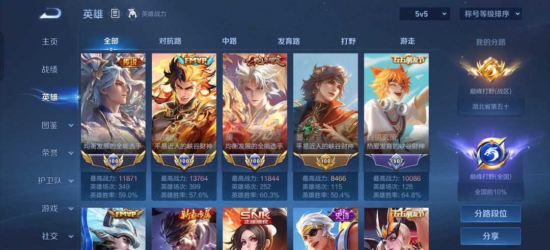 正式服国服澜韩信裴擒虎⭐️巅峰省标打野⭐️踏浪归弑枪猎影碎月剑心多热门打野传说⭐️巅峰击败