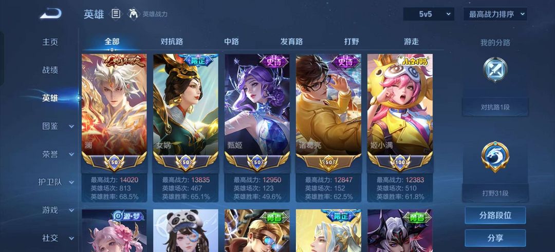 【V5 108皮】【巅峰定榜683名】本周国50女娲✨历史4国服甄姬女娲姬小满 禁巅峰可排位