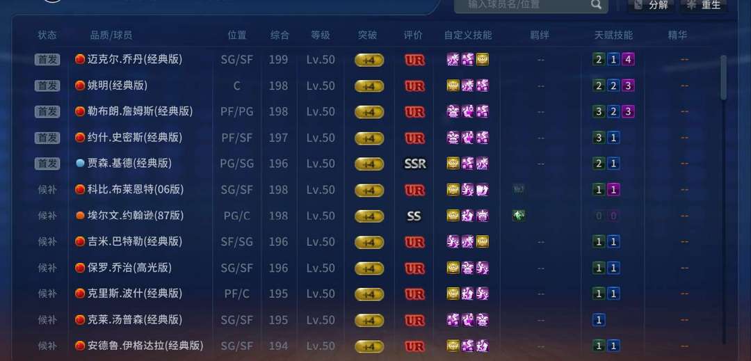 【极品】UR姚明➕UR詹姆斯➕UR乔丹❤️ssr基德❤️ur约什汤神❤️一套王朝阵容❤️