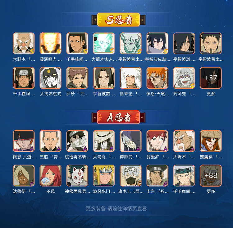 装备描述:56S72A❤️十尾带土❤️3500W❤️五影斑❤️破面带土❤️白面具